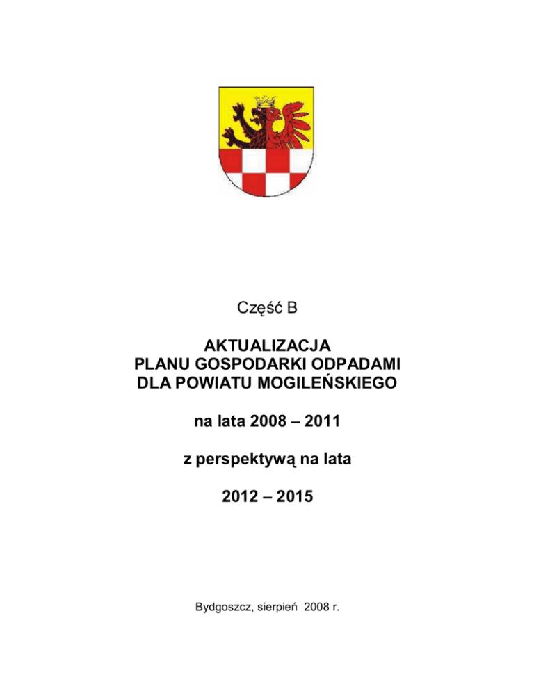 Część B AKTUALIZACJA PLANU GOSPODARKI ODPADAMI DLA