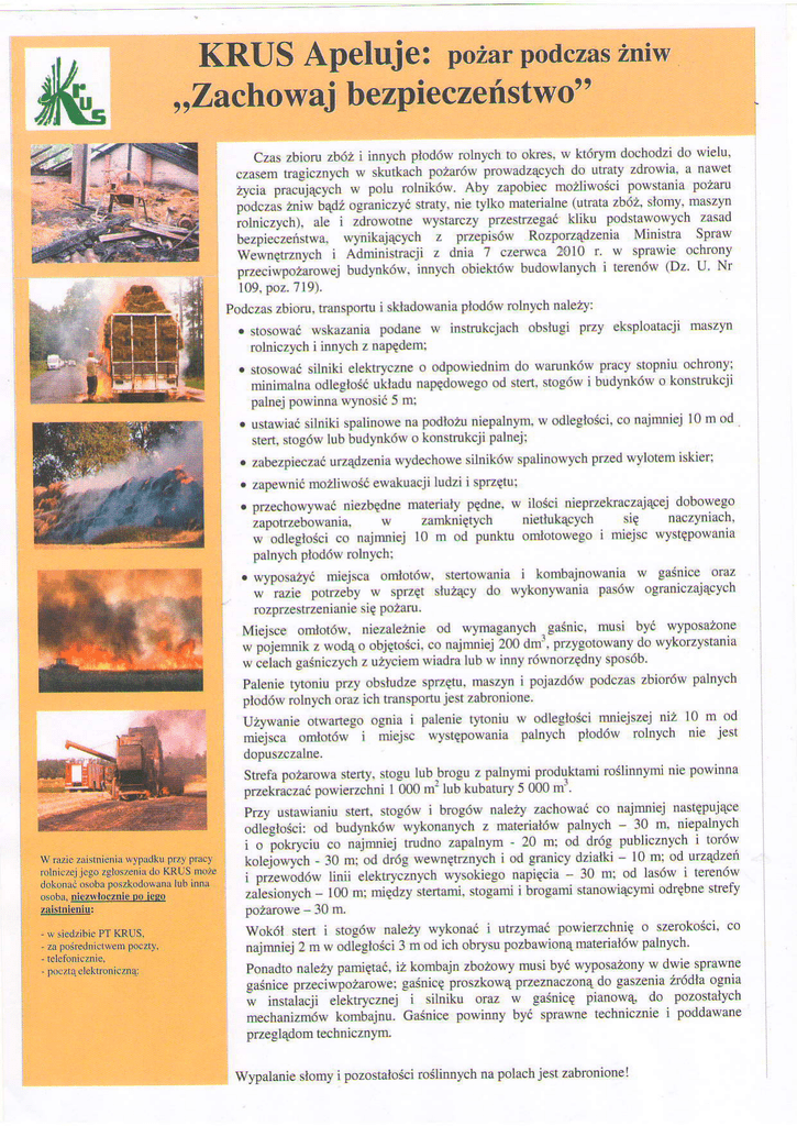 KRUS Apeluje: pozarpodczas