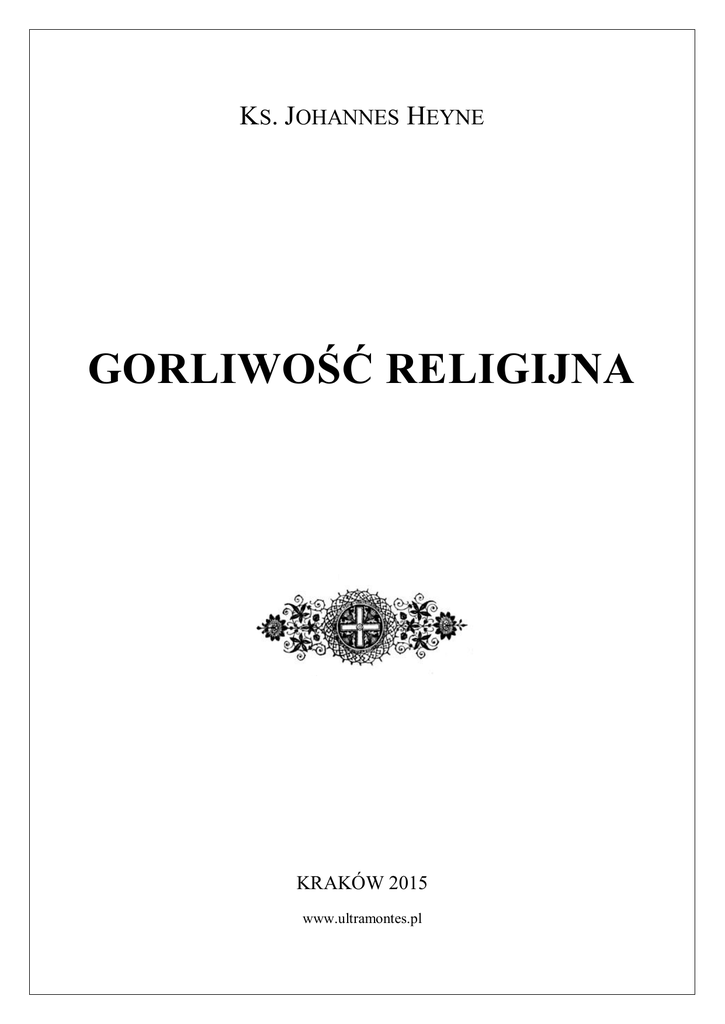 KS. JOHANNES HEYNE GORLIWOŚĆ RELIGIJNA KRAKÓW 2015 www.ultramontes.pl Gorliwość religijna KS. JOHANNES HEYNE Kiedy patrzymy na życie naszego Pana Jezusa Chrystusa, często napotykamy sceny, w których ludzie przychodzą do Niego z prośbą o uzdrowienie lub pomoc w potrzebach doczesnych bądź duchowych. Zauważają, że przemawia jak ktoś posiadający wielką moc. Wielokrotnie widzimy, że podejmują wielkie trudy lub muszą pokonywać znaczne przeciwności, ażeby dotrzeć do Jezusa. Dobrze znanym przykładem jest historia sparaliżowanego człowieka, którego przyjaciele opuścili przez otwór w dachu, aby mógł się spotkać z Chrystusem. Albo, pomyślcie o ludziach, którzy chcieli usłyszeć Jezusa! Bardzo często przybywali z tak daleka, że niewykluczone, iż zmarliby w drodze do domu, gdyby Apostołowie nie dali im jedzenia. Przykład tych ludzi winien motywować nas do wielkiej gorliwości w naszej wierze. Nie powinniśmy zapominać, że ten sam Jezus, który chodził po ziemi, nauczał i uzdrawiał, jest z nami teraz i może nadal działać w naszym życiu. Zastanawiając się nad tym tematem nie byłem pewien, czy jest on rzeczywiście odpowiedni dla tak zwanych "tradycyjnych" katolików. Wielu z nich już i tak podejmuje niemało wysiłków i ofiar, aby w pełni żyć wiarą katolicką. Jednakże, z drugiej strony, myślę, że wszystkim czasem brakuje niezbędnej gorliwości. A jeśli nawet tak nie jest, to zastanowienie się nad gorliwością może przynajmniej pomóc nam w ofiarowaniu naszych wyrzeczeń z większym spokojem i radością. Pozytywna motywacja – Królestwo Boże Otóż, motywację do gorliwości religijnej można czerpać z różnych myśli. Można, na przykład, wyobrazić sobie, że jeśli nie będziemy czujni to grozi nam niebezpieczeństwo utraty Boga na wieki i wiecznego zbawienia. Może to być zachętą, lecz postawa ta ma wiele wspólnego ze strachem, a strach nie do końca jest najlepszym bodźcem do zmiany na lepsze (chociaż Kościół naucza, że skrucha wynikająca z bojaźni jest wystarczającym aktem do uzyskania od Boga przebaczenia). Jednakże lepiej jest mieć świadomość pozytywnego aspektu naszej wiary i ogromnej wartości tego, co Bóg chce nam ofiarować oraz tego jakimi chce abyśmy się stali i co chce z nami uczynić, jeśli przyjmiemy Jego zaproszenie przez życie wiarą. 2 Co jest nam dane? Głównym przesłaniem Chrystusa jest: "Wypełnił się czas i przybliżyło się królestwo Boże, pokutujcie i wierzcie ewangelii" (Mk 1, 15). Pan Jezus często mówił o królestwie niebieskim, królestwie Bożym i królowaniu Boga. To właśnie jest dobra nowina, którą przynosi – Królestwo Boże. A my jesteśmy zaproszeni do uczestnictwa w tym Królestwie. Ale czym jest Królestwo Boże? Karl Adam pisze w swojej książce Jezus Chrystus: "Przez Królestwo Boże Pan Jezus ma na myśli nieprzerwane, wieczne zjednoczenie z Ojcem i Nim Samym" (Karl Adam, Jesus Christus, PatmosVerlag. Düsseldorf 1946, s. 154). To jest naszym powołaniem – żyć w zjednoczeniu z Bogiem. Ta komunia z Bogiem trwa w naszej duszy w sposób raczej niedostrzegalny, niemal niezauważalnie dla oczu. "Oto bowiem królestwo Boże w was jest", mówi Pan Jezus (Łk. 17, 21). A to zjednoczenie z Bogiem niekoniecznie prowadzi do triumfu na ziemi, bo nawet Jezus powiedział Piłatowi, że Jego Królestwo nie jest z tego świata. Nadprzyrodzone spojrzenie Musimy rozwijać spojrzenie na sprawy nadprzyrodzone, aby rozpoznać i docenić wartość Królestwa Bożego. Jest to spojrzenie, które wykracza poza sferę przyrodzoną, rzeczy czysto materialnych. Jeśli nie będziemy mieli takiego spojrzenia, zawsze będziemy zniewoleni w świecie materialnym i nigdy nie dostrzeżemy nic ponad to, co możemy zobaczyć oczami ciała. Pan Jezus raz uczynił znamienną uwagę, która na pierwszy rzut oka może nam się wydawać zaskakująca. Gdy urzędnik królewski przyszedł i poprosił Go, by poszedł i uzdrowił jego syna, Jezus odpowiedział: "Jeśli znaków i cudów nie ujrzycie, nie wierzycie" (Jan. 4, 48). Widać stąd, iż wiara bez cudów jest większa od tej, która opiera się na cudach – czyli namacalnych znakach – jednak nie jest to ślepa wiara, lecz prawdziwa wiedza. Napomnienie Pana Jezusa skierowane jest do wszystkich ludzi, których wiara zależy tylko od tego, co widzą i słyszą; ludzi obojętnych potrafi poruszyć dopiero coś wyjątkowego, oddziałującego na ich zmysły. Wyzwolenie z grzechu Jednakże, aby mieć udział w Królestwie Bożym musimy wyzwolić się z niewoli grzechu. Ponadto, poprzez zrozumienie – że nasza wiara oznacza wyzwolenie – nasza gorliwość może się wzmocnić. Święty Paweł napisał w jednym z listów: "... dziękując Bogu Ojcu, który nas uczynił godnymi cząstki dziedzictwa świętych w światłości; On też nas wyrwał z mocy ciemności i 3 przeniósł do królestwa umiłowania swego Syna, a w Nim mamy odkupienie przez krew Jego, odpuszczenie grzechów" (Kol. 1, 12-14). Byliśmy w królestwie ciemności, ale Jezus wyrwał nas stamtąd i przeniósł do Królestwa Bożego, królestwa światła. Aby tego dokonać, zadośćuczynił za nasze grzechy przelewając Swą Najświętszą Krew. Dziś zło na świecie jest bagatelizowane. Lecz im więcej mamy doświadczenia życiowego, tym bardziej widzimy, że świat jest w rzeczywistości królestwem zniewolenia. Może kiedyś przeczytaliśmy dobrą książkę lub oglądnęli dobry film, gdzie pokazano zło w całej jego niegodziwości i brzydocie. Trójjedyny Bóg w nas Po wyzwoleniu z niewoli grzechu możemy, jak zaznaczono powyżej, mieć udział w Królestwie Bożym, które jest życiem w zjednoczeniu z Bogiem. Nasz Pan mówi bardzo wyraźnie, co oznacza ta jedność: "Jeśli mnie kto miłuje, będzie strzegł słów moich, a Ojciec mój umiłuje go, i do niego przyjdziemy, i mieszkanie u niego uczynimy" (Jan. 14, 23). Jest to jedna z wypowiedzi Pana Jezusa, któr