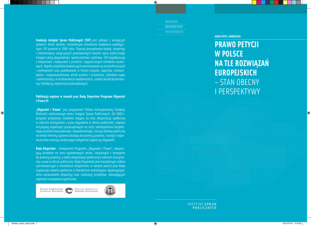 ANNA RYTEL-WARZOCHA Fundacja Instytut Spraw Publicznych (ISP) jest jednym z wiodących polskich think tanków, niezależnym ośrodkiem badawczo-analitycznym. ISP powstał w 1995 roku. Poprzez prowadzenie badań, ekspertyz i rekomendacji dotyczących podstawowych kwestii życia publicznego Instytut służy obywatelowi, społeczeństwu i państwu. ISP współpracuje z ekspertami i badaczami z polskich i zagranicznych ośrodków naukowych. Wyniki projektów badawczych prezentowane są na konferencjach i seminariach oraz publikowane w formie książek, raportów, komunikatów i rozpowszechniane wśród posłów i senatorów, członków rządu i administracji, w środowiskach akademickich, a także wśród dziennikarzy i działaczy organizacji pozarządowych. Publikacja wydana w ramach prac Rady Ekspertów Programu Obywatel i Prawo VI. PRAWO PETYCJI W POLSCE NA TLE ROZWIĄZAŃ EUROPEJSKICH – STAN OBECNY I PERSPEKTYWY „Obywatel i Prawo” jest programem Polsko-Amerykańskiej Fundacji Wolności realizowanym przez Instytut Spraw Publicznych. Od 2002 r. program podejmuje działania mające na celu aktywizację społeczną w zakresie korzystania z praw obywatela w sferze publicznej: wspiera inicjatywy organizacji pozarządowych na rzecz udostępniania bezpłatnego poradnictwa prawnego i obywatelskiego, inicjuje debatę publiczną na temat reformy systemu dostępu do pomocy prawnej, rozwija i rozpowszechnia metody zwiększające aktywność wyborczą obywateli. Rada Ekspertów – komponent Programu „Obywatel i Prawo”, obejmujący działania na rzecz systemowych zmian, związanych z dostępem do pomocy prawnej, a także aktywizację społeczną w zakresie korzystania z praw w sferze publicznej: Rada Ekspertów jest niezależnym ciałem opiniotwórczym o charakterze eksperckim. w ramach swoich prac Rada organizuje otwarte spotkania o charakterze seminaryjno-dyskusyjnym, zleca opracowanie ekspertyz oraz realizację projektów, wdrażających wybrane rozwiązania systemowe. okladka_prawo_petycji.indd 1 2012-07-24 11:35:53 ANNA RYTEL-WARZOCHA PRAWO PETYCJI W POLSCE NA TLE ROZWIĄZAŃ EUROPEJSKICH – STAN OBECNY I PERSPEKTYWY 01_Prawo_petycji.indd 1 2012-07-24 11:34:22 INSTYTUT SPRAW PUBLICZNYCH Program Prawa i Instytucji Demokratycznych Publikacja wydana w ramach prac Rady Ekspertów Programu Obywatel i Prawo VI. © Copyright by Instytut Spraw Publicznych, Warszawa 2012 Przedruk materiałów Instytutu Spraw Publicznych w całości lub w części jest możliwy wyłącznie za zgodą instytutu. Cytowanie oraz wykorzystywanie danych jest dozwolone z podaniem źródła. ISBN: 978-83-7689-128-6 Wydawca: Fundacja Instytut Spraw Publicznych 00–031 Warszawa, ul. Szpitalna 5 lok. 22 tel. (22) 55 64 260, faks (22) 55 64 262 e-mail: [email protected] www.isp.org.pl 01_Prawo_petycji.indd 2 2012-07-24 11:34:22 WSTĘP Pomimo, iż od uchwalenia Konstytucji Rzeczypospolitej Polskiej upłynęło już 15 lat, z podmiotowego prawa do petycji określonego w art. 63, obywatele oraz inne uprawnione podmioty wciąż nie mogą skutecznie korzystać. Należy przy tym podkreślić, iż prawo petycji, które ma długą tradycję w Polsce i na świecie, uznane zostało przez polskiego ustrojodawcę za jedno z najistotniejszych praw jednostki, które wpisuje się w zasadę demokracji partycypacyjnej oraz dialogu społecznego i ma przyczyniać się do rozwoju społeczeństwa obywatelskiego poprzez uspołecznienie procesu decyzyjnego. Stanowi ono również środek służący ochronie praw i wolności jednostki. Konstytucja bardzo szeroko ujmuje zarówno krąg podmiotów uprawnionych do przedkładania petycji, jak i podmiotów, do których petycje mogą być składane, wskazując również, iż mogą być one przedkładane w interesie własnym, interesie publicznym, jak i innych osób, o ile wyrażą na to zgodę. Brak ustawowej regulacji sposobu składania petycji, jak też trybu ich rozpatrywania niewątpliwie uznać można za jedno z największych zaniechań legislacyjnych polskiego parlamentu. Po roku 1997 były podejmowane próby ustawowego uregulowania prawa petycji, lecz były one nieskuteczne, jak zainicjowana przez Radę Ministrów szeroka nowelizacja Kodeksu postępowania administracyjnego (dalej k.p.a.), która w związku z negatywną oceną została przez wnioskodawców wycofana, czy pozytywnie oceniana lecz przerwana końcem VI kadencji parlamentu senacka inicjatywa przyjęcia odrębnej ustawy poświęconej petycjom. Do prawa petycji odnosi się co prawda art. 221 k.p.a. jednak w kodeksowej regulacji prawa petycji brak konsekwencji, gdyż w dalszej części przepisów działu VIII brak już odwołania do instytucji petycji. Do petycji nie odnosi się również wydane na podstawie art. 226 k.p.a. rozporządzenie Rady Ministrów z dnia 8 stycznia 2002 r. w sprawie organizacji przyjmowania i rozpatrywania skarg i wniosków. Na tym tle rysuje się ogromna potrzeba przyjęcia odpowiedniej regulacji prawnej. Szansę na to dają zapowiedzi Senatu ponownego wniesienia do Sejmu projektu ustawy o petycjach. Projekt ten przygotowany został przez senacką Komisję Praw Człowieka i Petycji jako odpowiedź na postulaty zgłaszane senatorom przez organizacje pozarządowe i co do zasady bardzo pozytywnie przyjęty został przez środowiska naukowe, poselskie, samorządowe, jak i przez głównych zainteresowanych – społeczeństwo. Nie mniej jednak postępowanie w sprawie ponownego wykonania inicjatywy ustawodawczej w sprawie projektu ustawy stanowi dobry moment, aby niektóre rozwiązania przemyśleć jeszcze raz. W szczególności w projekcie można byłoby wyraźnie wskazać dopuszczalność składania petycji zbiorowych przez nieformalne grupy obywateli czy cudzoziemców, skrócenie terminów wyznaczonym organom rozpatrującym petycje, czy umożliwienie adresatom petycji udziału w procesie jej rozpatrzenia. Zaproponować też można odejście od zasady, iż petycje dotyczące spraw leżących w kompetencji kilku organ