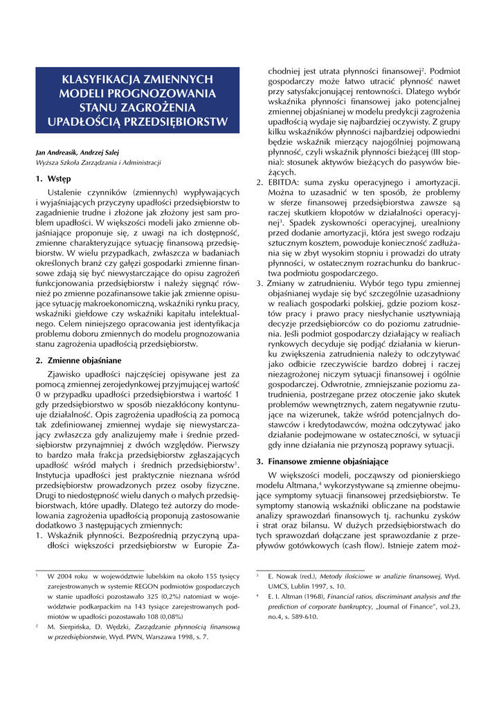 ANDREASIK J., SALEJ A. (2005): Klasyfikacja zmiennych modeli
