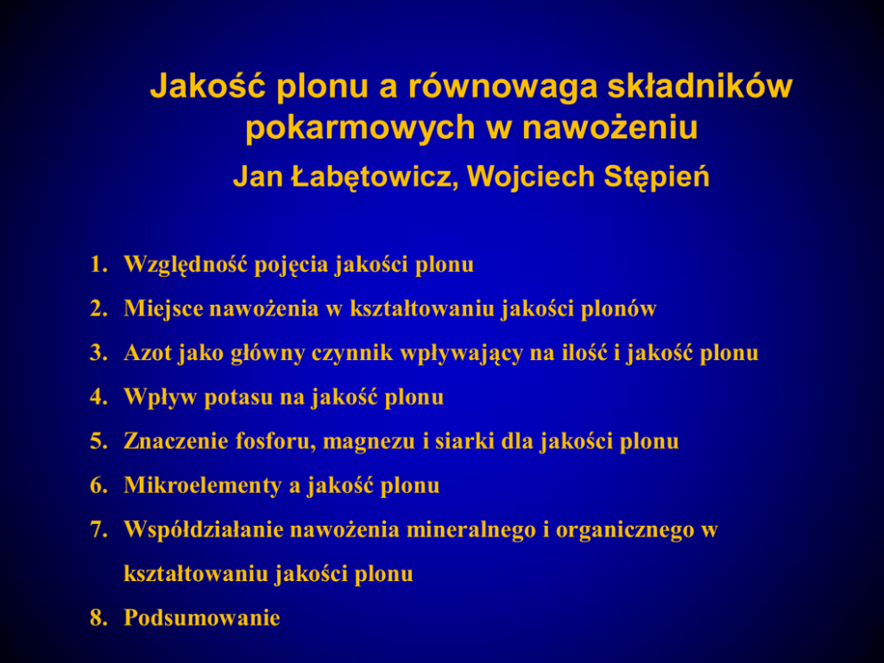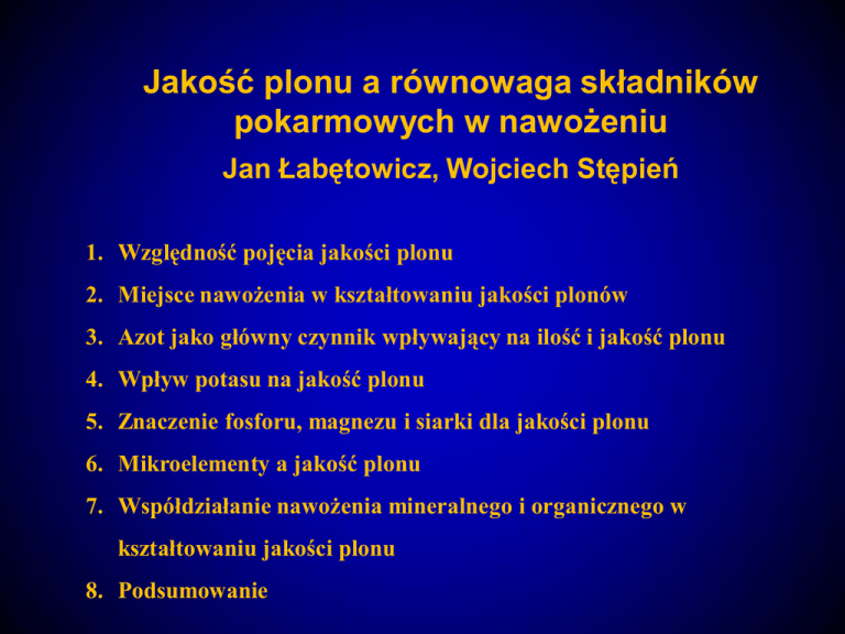 Jakość plonu a równowaga składników pokarmowych w nawożeniu