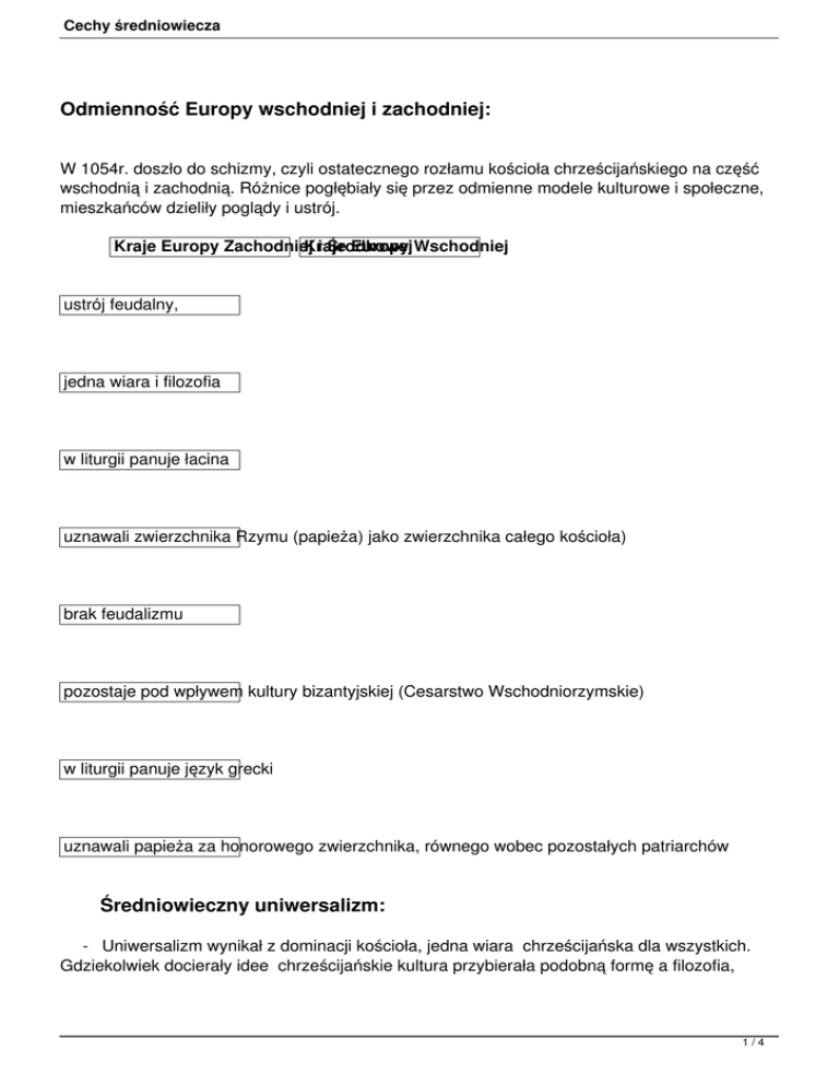 Cechy średniowiecza - Epoki
