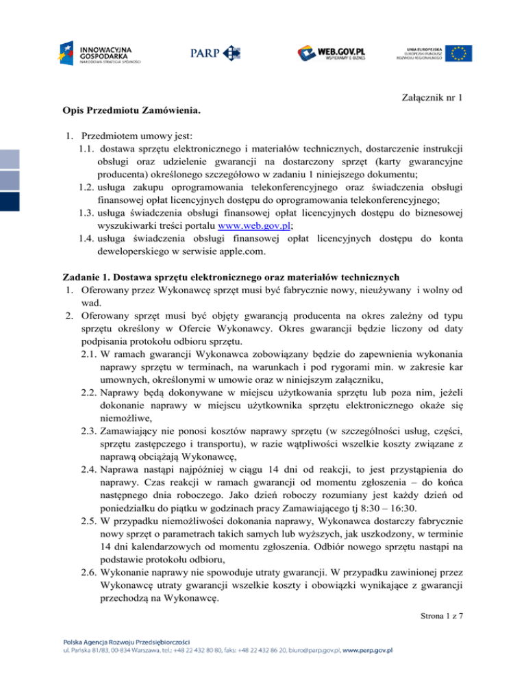 Załącznik nr 1 Opis Przedmiotu Zamówienia. 1