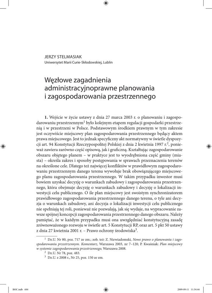 Węzłowe zagadnienia administracyjnoprawne planowania i