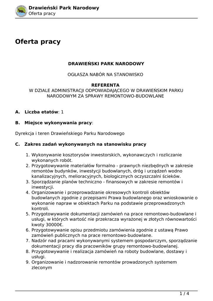 Oferta pracy - Drawieński Park Narodowy