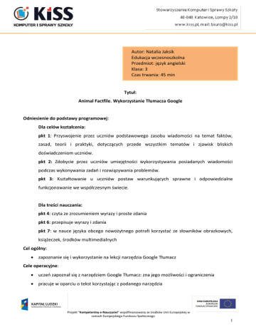 Tytuł: Animal Factfile. Wykorzystanie Tłumacza Google Odniesienie