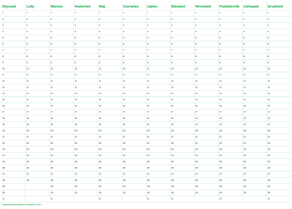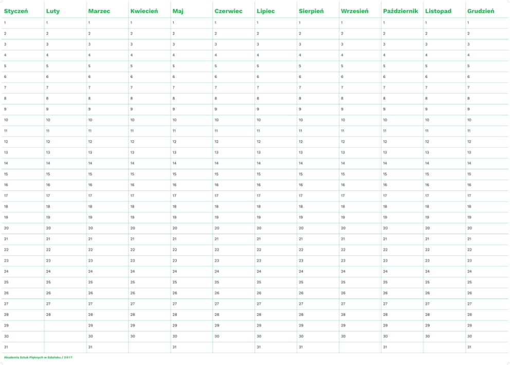 Styczeń Luty Marzec Kwiecień Maj Czerwiec Lipiec Sierpień Wrzesień Październik Listopad Grudzień 1 1 1 1 1 1 1 1 1 1 1 1 2 2 2 2 2 2 2 2 2 2 2 2 3 3 3 3 3 3 3 3 3 3 3 3 4 4 4 4 4 4 4 4 4 4 4 4 5 5 5 5 5 5 5 5 5 5 5 5 6 6 6 6 6 6 6 6 6 6 6 6 7 7 7 7 7 7 7 7 7 7 7 7 8 8 8 8 8 8 8 8 8 8 8 8 9 9 9 9 9 9 9 9 9 9 9 9 10 10 10 10 10 10 10 10 10 10 10 10 11 11 11 11 11 11 11 11 11 11 11 11 12 12 12 12 12 12 12 12 12 12 12 12 13 13 13 13 13 13 13 13 13 13 13 13 14 14 14 14 14 14 14 14 14 14 14 14 15 15 15 15 15 15 15 15 15 15 15 15 16 16 16 16 16 16 16 16 16 16 16 16 17 17 17 17 17 17 17 17 17 17 17 17 18 18 18 18 18 18 18 18 18 18 18 18 19 19 19 19 19 19 19 19 19 19 19 19 20 20 20 20 20 20 20 20 20 20 20 20 21 21 21 21 21 21 21 21 21 21 21 21 22 22 22 22 22 22 22 22 22 22 22 22 23 23 23 23 23 23 23 23 23 23 23 23 24 24 24 24 24 24 24 24 24 24 24 24 25 25 25 25 25 25 25 25 25 25 25 25 26 26 26 26 26 26 26 26 26 26 26 26 27 27 27 27 27 27 27 27 27 27 27 27 28 28 28 28 28 28 28 28 28 28 28 28 29 29 29 29 29 29 29 29 29 29 29 30 30 30 30 30 30 30 30 30 30 30 31 31 31 31 Akademia Sztuk Pięknych w Gdańsku / 2 0 1 7 31 31 31