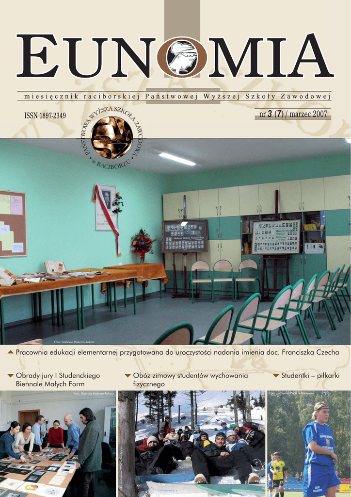 nr 3 (7) / marzec 2007 Foto: Gabriela Habrom-Rokosz Pracownia edukacji elementarnej przygotowana do uroczystości nadania imienia doc. Franciszka Czecha Obrady jury I Studenckiego Biennale Małych Form Obóz zimowy studentów wychowania fizycznego Studentki – piłkarki Foto: archiwum PWSZ w Raciborzu Foto: archiwum PWSZ w Raciborzu Foto: Gabriela Habrom-Rokosz Słowo od redakcji Otwierającą siódmy numer „Eunomii” notę odredakcyjną rozpocząć musimy od przeproszenia Czytelników za opóźnienie edycji. Jest ono konsekwencją sztywnych terminów procedur przetargu publicznego, jaki został ogłoszony przez władze PWSZ. W jego wyniku firmą przygotowującą nasz periodyk do druku jest odtąd „Oficyna Drukarska – Usługi Poligraficzne, Jacek Chmielewski”, mająca swoją siedzibę w Warszawie. Gratulujemy, a jednocześnie wyrażamy przekonanie, że współpraca redakcji „Eunomii” z Panem Jackiem i całym Jego zespołem będzie się układała harmonijnie i owocnie. W ostatnim czasie odbyło się w raciborskiej Uczelni wiele ważnych wydarzeń. Niektóre z nich relacjonujemy w najnowszym numerze „Eunomii”, o innych będziemy pisali w kolejnych edycjach. Szczególną częścią siódmego numeru jest specjalna wkładka, poświęcona nadaniu pracowni edukacji elementarnej imienia doc. Franciszka Czecha oraz promocji pracy zbiorowej pod redakcją prof. ndzw. dr hab. Gabrieli Kapicy pt. „Współczesne konteksty dzieciństwa”. Pragniemy także zwrócić uwagę na bogaty materiał ikonograficzny, dotyczący I Studenckiego Biennale Małych Form. Zamieszczomy go zarówno na stronach „Eunomii”, jak i w studenckim dodatku „Żarówa”. „Eunomia” nawiązała ostatnio ścisłe więzy z wydawanym przez Raciborskie Centrum Kultury półrocznikiem „Almanach Prowincjonalny”. W środę 21 lutego 2007 roku odbyła się w sali uczelnianej Czytelni wspólna promocja „Almanachu” i „Eu- nomii”. Natomiast 22 lutego redakcja „Almanachu Prowincjonalnego” zorganizowała pierwszą „debatę przy owalnym stole” (nazwa pochodzi od kształtu mebla stojącego w gabinecie Prorektora ds. organizacji i rozwoju dr Jerzego Pośpiecha, prof. PWSZ). Tematem dyskusji, w której wzięli udział m.in. prof. zw. dr hab. Joachim Raczek, prof. ndzw. dr hab. Marian Kapica, prof. ndzw. dr Jerzy Pośpiech, prof. ndzw. dr hab. Gabriela Kapica, dr Adama Szecówka, było powstanie, historia i dzień dzisiejszy raciborskiej Państwowej Wyższej Szkoły Zawodowej. Zapis debaty – wzbogacony obfitą dokumentacją fotograficzną - został umieszczony w piątym numerze „Almanachu ”. Redakcja „Eunomii” przedstawi naszym Czytelnikom w następnym numerze fragmenty tej bardzo ciekawej rozmowy, do której okazję stworzyły trwające obchody pięciolecia naszej Uczelni. Ich apogeum nastąpi w czerwcu bieżącego roku. Będziemy oczywiście szeroko informowali o wszystkich przedsięwzięciach jubileuszowych. Innym przewodnim tematem najbliższych numerów „Eunomii” będzie niewątpliwie rozpoczynająca się kampania do władz Uczelni. Ufamy, że przebiegnie ona w twórczej i merytorycznej atmosferze. Chcielibyśmy, jako uczelniane pismo, tę atmosferę współtworzyć. Dziękujemy wszystkim autorom i współpracownikom „Eunomii” za współudział w stworzeniu siódmego już numeru. Jak zwykle zachęcamy do dalszej współpracy. Życzymy Państwu miłej lektury. REDAKCJA Pierwsza debata przy owalnym stole Fotografie na okładce przedstawiają: 1. Pracownię edukacji elementarnej (s. 227) przygotowaną do uroczystości nadania imienia doc. Franciszka Czecha (12 marca 2007 r.). Poświęciliśmy temu wydarzeniu specjalną wkładkę. 2. Obrady jury I Studenckiego Biennale Małych Form. Zdjęcia niektórych prac nagrodzonych i wyróżnionych znajdzie Czytelnik na stronach „Eunomii” i „Żarówy”. 3. Zdjęcie przedstawiające pobyt studentów wychowania fizycznego na obozie zimowym. Materiał na ten temat w środku numeru. 4. Studentki – piłkarki. Artykuł dr. Piotra Olendra o tym fenomenie w środku numeru. Fot. Gabriela Habrom-Rokosz Spis treści Słowo od redakcji ŻARÓWA s. 1 niezależny dodatek studencki KRONIKA WYDARZEŃ – Senat i Rektorat s. 3 Uroczystość w Opawie s. 4 I Studenckie Biennale Małych Form – wybrane Porządek posiedzeń Senatu prace nagrodzone i wyróżnione s. 5 s. 1 – 3 List JM Rektora w sprawie lustracji s. 5 Studencka Akademia Zdrowia – TWÓJ WYBÓR O I Studenckim Biennale Małych Form ILONA GEMBALCZYK ALEKSANDER OSTROWSKI s. 4 s. 6 O miniaturze i małej formie słów kilka ALEKSANDER OSTROWSKI s. 7 Wyniki I Studenckiego Biennale Małych Form s. 7 – 8 Słowo Rektora PWSZ w Raciborzu do organizatorów i uczestników I Biennale s. 9 Konferencja naukowa na temat: Bezpieczeństwo w społeczności lokalnej SABINA KRAWIEC, JOANNA DZIEŃDZIORA s. 10 – 12 W medialnym raju i infernie. Z dr. Adamem Szecówką rozmawia Janusz Nowak s. 13 – 14 PWSZ w Raciborzu a żeński football, czyli kobiety górą! PIOTR OLENDER s. 15 – 16 Wieści z Instytutu Studiów Edukacyjnych s. 17 – 19 Wolontariat resocjalizujący URSZULA SZECÓWKA s. 20 – 21 Widokówka z obozu zimowego AGNIESZKA KOSMOL s. 22 – 24 Moda i język JOANNA KORBUT s. 25 Miesięcznik Państwowej Wyższej Szkoły Zawodowej w Raciborzu Jak Ryszard Kapuściński uczył się języka anRok II Nr 3 (7). Marzec 2007 r. gielskiego Adres redakcji: OPRAC. DYKA s. 26 ul. Słowackiego 55, 47-400 Racibórz tel./fax: 032 415 50 20 Efekt współpracy uczelni wyższych, towarzystwa regionalnego i Urzędu Miasta Redaguje zespół EDWARD NYCZ s. 27 Redaktor naczelny: Janusz Nowak Projekt winiet: Kazimierz Frączek – Wydawnictwo SCRIBA Nowości wydawnicze Materiał zdjęciowy: Gabriela Habrom-Rokosz s. 28 Opracowanie DTP: Oficyna Drukarska – Jacek Chmielewski Eunomia Siódmy numer „Eunomii” uzupełnia specjalny dodatek poświęcony podwójnej uroczystości w Instytucie Studiów Edukacyjnych: nada