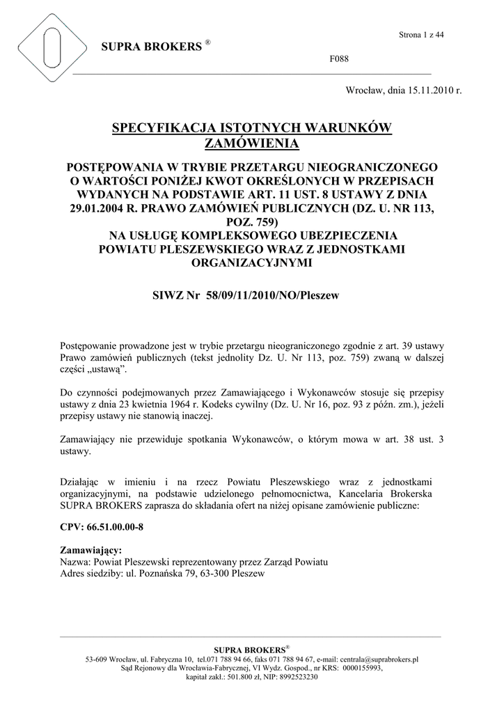 F088 SIWZ Powiat Pleszewski __ogł - Biuletyn Informacji Publicznej