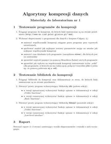 Algorytmy kompresji danych Materiały do laboratorium nr 1 1