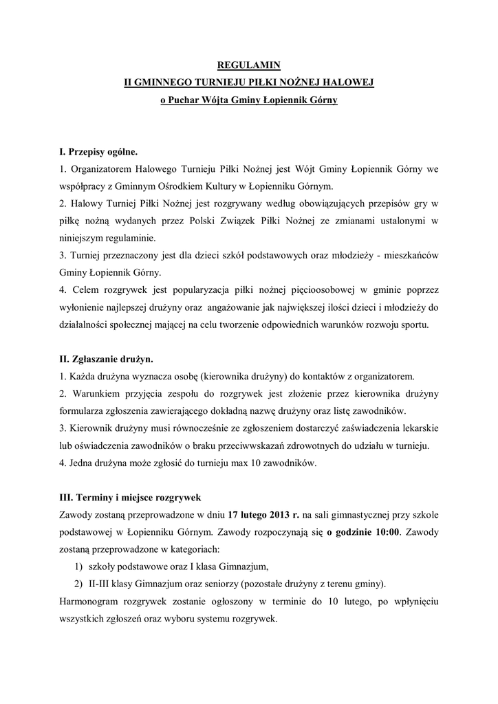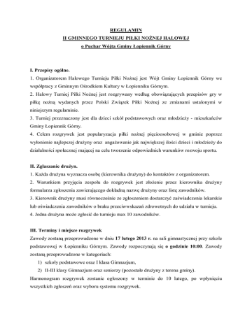 REGULAMIN II GMINNEGO TURNIEJU PIŁKI NOŻNEJ HALOWEJ o