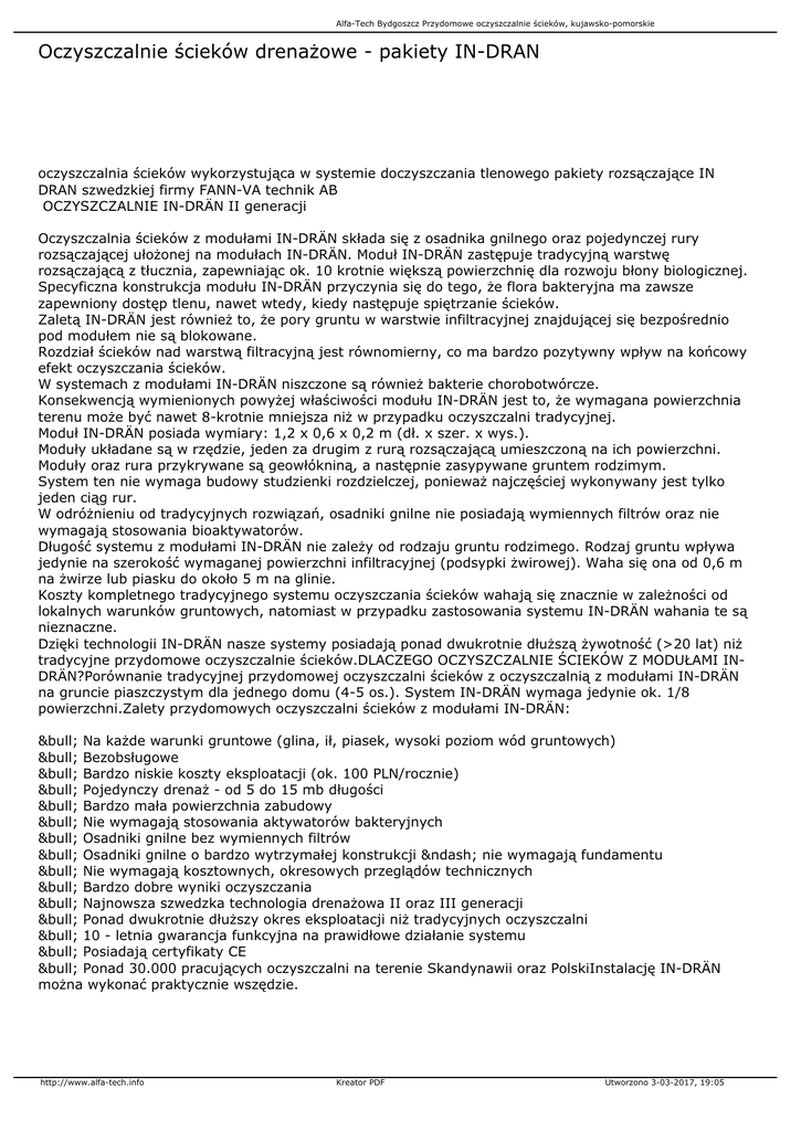 Oczyszczalnie ścieków drena owe - pakiety IN-DRAN - Alfa