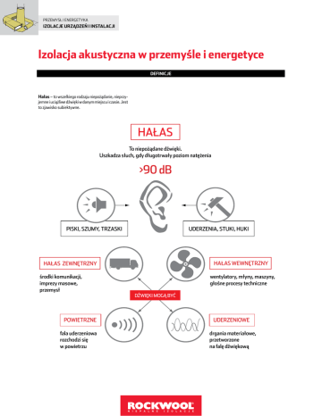 PRZEMYSŁ I ENERGETYKA IZOLACJE URZĄDZEŃ I INSTALACJI Izolacja akustyczna w przemyśle i energetyce DEFINICJE Hałas – to wszelkiego rodzaju niepożądanie, nieprzyjemne i uciążliwe dźwięki w danym miejscu i czasie. Jest to zjawisko subiektywne. HAŁAS To niepożądane dźwięki. Uszkadza słuch, gdy długotrwały poziom natężenia >90 dB PISKI, SZUMY, TRZASKI UDERZENIA, STUKI, HUKI HAŁAS WEWNĘTRZNY HAŁAS ZEWNĘTRZNY wentylatory, młyny, maszyny, głośne procesy techniczne środki komunikacji, imprezy masowe, przemysł DŹWIĘKI MOGĄ BYĆ POWIETRZNE UDERZENIOWE fala uderzeniowa rozchodzi się w powietrzu drgania materiałowe, przetworzone na falę dźwiękową Dźwięk – fala akustyczna rozchodząca się w danym ośrodku sprężystym (ciało stałe, płynne, gaz) zdolna wytworzyć wrażenie słuchowe. Izolacja akustyczna dźwięku powietrznego – redukcja natężenia dźwięku dla fali dźwiękowej przechodzącej przez przegrodę (różnica poziomów pomiędzy przychodzącą falą dźwięku powietrznego i przekazywana fala dźwięku powietrznego). Izolacja akustyczna wyrażana jest zwykle jako indeks redukcji dźwięku (izolacyjność akustyczna) R; jednostka dB. R zależy od częstotliwości dźwięku przechodzącego przez element i jest mierzony w pasmach 1/3 oktawy. Współczynnik absorpcji (pochłaniania) dźwięku – to termin określający, jak dobrze (lub źle) dany materiał pochłania energię przenoszona przez dźwięk. Współczynnik absorpcji akustycznej można zmierzyć w pasmach 1/3 oktawy oktawy zgodnie z normą PN-EN-ISO 354 oraz zważyć wg normy PN-EN-ISO 11654. IZOLACYJNOŚĆ AKUSTYCZNA PRZEGRODY = pochłonięta energia padająca energia Ia = Ii Norma PN-EN ISO 11654 zaleca określenie wskaźnika pochłaniania dźwięku w na podstawie wyników pomiarów pogłosowego współczynnika pochłaniania dźwięku s (wg PN-EN ISO 354 w zakresie częstotliwości od 100 do 5000 Hz). Wprowadza klasyfikację wyrobów budowlanych ze względu na właściwości dźwiękochłonne. Klasyfikacji wyrobu dokonuje się w oparciu o wskaźnik pochłaniania w i wyrób przypisuje się do jednej z klas pochłaniania, oznaczonych symbolami od A do E. Do najwyższej klasy pochłaniania A może zostać zaklasyfikowany wyrób, którego wskaźnik w wynosi 0,90; 0,95 i 1,00, do klasy B zaś odpowiednio 0,80 i 0,85. TAB. KLASY POCHŁANIANIA DŹWIĘKU DLA WYROBÓW WG NORMY PN-EN ISO 11654 W ZALEŻNOŚCI OD WSKAŹNIKA POCHŁANIANIA DŹWIĘKU w. wskaźnik w KLASA 0,90 - 1,00 A 0,80 – 0,85 B 0,60 – 0,75 C 0,30 – 0,55 D 0,25 – 0,15 E 0,10 – 0,00 Wyrób -dekoracja Maty Prorox WM 80 i Prorox WM 100 znajdują się w klasie A. Oznacza to, że pod względem pochłaniania dźwięku jak również pod względem przewodności cieplnej w wysokich temperaturach są produktem najwyższej jakości wśród materiałów izolacyjnych stosownych w przemyśle i energetyce. WYKRES POCHŁANIANIA DŹWIĘKU DLA PROROX WM 80 GR. 50 MM, w =1,00, KLASA A 1,2 Fala padająca z natężeniem Ii 1,0 sound absorption coefficient Ds Pochłonięte (lub przekazane) natężenie energii Ia 0,8 0,6 0,4 0,2 0,0 125 Odbita fala o natężeniu Ir WSPÓŁCZYNNIK POCHŁANIANIA DŹWIĘKU 250 500 1000 2000 Częstotliwość f, Hz 4000 WYKRES POCHŁANIANIA DŹWIĘKU DLA PROROX WM 100 GR. 100 MM, w=1,00, KLASA A 1,2 1,2 1,0 1,0 sound absorption coefficient Ds sound absorption coefficient Ds WYKRES POCHŁANIANIA DŹWIĘKU DLA PROROX WM 80 GR. 100 MM, w =1,00, KLASA A 0,8 0,6 0,4 0,2 0,8 0,6 0,4 0,2 0,0 0,0 125 250 500 1000 2000 Częstotliwość f, Hz 4000 125 250 500 1000 2000 Częstotliwość f, Hz 4000 Izolacyjność akustyczna każdej przegrody jest determinowana w pierwszym rzędzie „prawem masy” WYKRES POCHŁANIANIA DŹWIĘKU DLA PROROX WM 105 GR. 100 MM, w=1,00, KLASA A 1,2 R 20 lg (Mf) – 47,5 [dB] M – masa powierzchniowa przegrody [kg/m2] F – częstotliwość [Hz] sound absorption coefficient Ds 1,0 Izolacyjność akustyczną można zwiększać poprzez zwiększanie masy przegrody, przy czym większe efekty daje zwiększanie liczby warstw okładzinowych (miękka i ciężka guma, tworzywa sztuczne, blacha perforowana) niż zwiększani ich grubości. Efektywność przyrostu izolacyjności akustycznej przegrody zależy od zdolności pochłaniania dźwięku przez materiał absorbujący (wskaźnikiem jest tutaj współczynnik pochłaniania dźwięku ), liczby warstw materiałów o zróżnicowanej impedancji akustycznej oraz od zakresu przesunięcia częstotliwości rezonansowej i częstotliwości granicznej koincydencji. 0,8 0,6 0,4 0,2 0,0 125 250 500 1000 2000 Częstotliwość f, Hz 4000 Najbardziej wiarygodnym źródłem informacji o danym wariancie rozwiązania konstrukcyjnego są pomiary laboratoryjne przeprowadzone na specjalnie przygotowanych stanowiskach, gdzie izolacje akustyczne montowane są bezpośrednio na źródle hałasu, np. na korpusach maszyn, rurociągów, wentylatorów. Poniższe wykresy przedstawiają izolacyjność akustyczną płyt i mat z wełny mineralnej o grubości 50 mm montowanych na stoiskach odwzorowujących rzeczywiste warunki pracy urządzeń stosowanych w przemyśle. Pomiary dokonano w Zakładzie Wibroakustyki Instytutu techniki Cieplnej w Łodzi. Wyniki przedstawiono w pasmach oktawowych. WAŻNE! • Każdy materiał pochłania dźwięk – jeden mniej, drugi więcej. • Dany materiał zawsze charakteryzuje współczynnik pochłaniania, który rośnie wraz z grubością: określona zostaje także klasa od A do E. • Materiał (beton, przekładka gumowa, płyta z wełny mineralnej) jest mniej lub bardziej dźwiękochłonny. Gdy zaś z tych materiałów zbudujemy przegrodę, to możemy określić jej izolacyjność akustyczną. 3 Izolacyjność akustyczna R [dB] 25 20 15 10 5 0 100 TECHROCK 60 1000 TECHROCK 80 10 000 Częstotliwość f [Hz] IZOLACYJNOŚĆ AKUSTYCZNA I IZOLACYJNOŚĆ TERMICZNA Izolacyjność akustyczna R [dB] 30 25 20 Izolacje akustyczne mogą występować pod postac