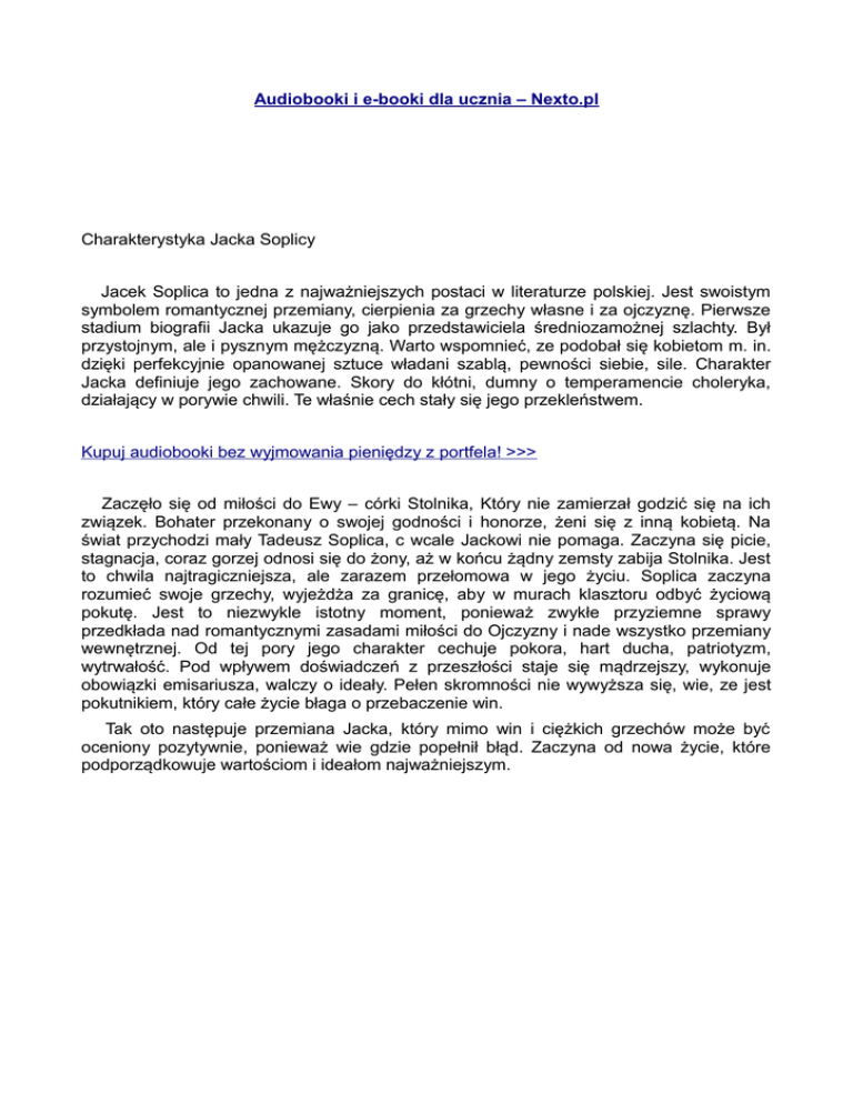 Audiobooki i e-booki dla ucznia – Nexto.pl Charakterystyka Jacka