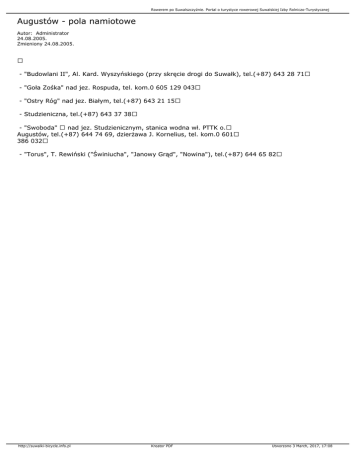 Augustów, tel.(+87) 644 74 69, dzierżawa J. Kornelius, tel. kom.0 601
