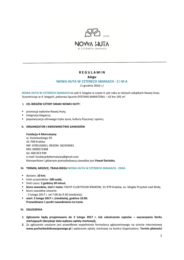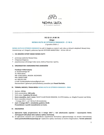 R E G U L A M I N biegu NOWA HUTA W CZTERECH SMAKACH