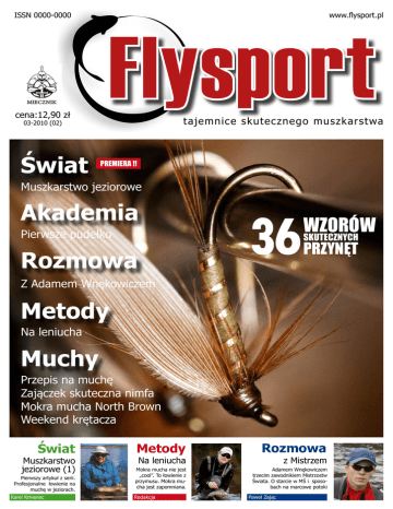 ISSN 0000-0000 cena:12,90 zł 03-2010 (02) Świat Flysport www.flysport.pl tajemnice skutecznego muszkarstwa PREMIERA !! Muszkarstwo jeziorowe Akademia Pierwsze pudełko Rozmowa 36 WZORÓW SKUTECZNYCH PRZYNĘT Z Adamem Wnękowiczem Metody Na leniucha Muchy Przepis na muchę Zajączek skuteczna nimfa Mokra mucha North Brown Weekend krętacza Świat Metody Rozmowa Pierwszy artykuł z serii. Profesjonalne łowienie na muchę w jeziorach. Mokra mucha nie jest „cool”. To łowienie z przymusu. Mokra mucha jest zapomniana. Adamem Wnękowiczem trzecim zawodnikiem Mistrzostw Świata. O starcie w MŚ i sposobach na marcowe potoki Muszkarstwo jeziorowe (1) Karel Krivanec Na leniucha Redakcja z Mistrzem Paweł Zając Flysport W numerze Wydawca: MIECZNIK Jerzy Paluch Adres Redakcji: Flysport 28-330 Wodzisław Laskowa 21 Polska NIP 634 001 73 33 ISSN 0000-0000 Telefon: (+48) 0 509 592 386; +48 0 600 541 382 Internet: www.flysport.pl e-mail: [email protected] Redaktor Naczelny: Jerzy Paluch Sekretarz Redakcji: Paweł Zając Współpracownicy: Artur Buczkowski, Zdzisław Czekała, Tomek Kotelon, Przemek Lisowski, Wojciech Marzec, Arkadiusz Wyroślak, Józef Zając. Zdjęcie na okładce: Wojciech Marzec Kolportaż: www.e-kiosk.pl Redakcja nie zwraca materiałów nie zamówionych wcześniej, jednakże w przypadku ich publikacji zastrzegamy sobie prawo ich skracania. Wydawnictwo MIECZNIK nie ponosi odpowiedzialności za treść reklam i ogłoszeń i ma prawo odmówić ich publikacji bez uzasadnienia. Wydawnictwo nie ponosi odpowiedzialności za treści publikowane przez autorów oraz za ewentualne błędy i nieścisłości. Wszelkie materiały są objęte prawem autorskim. Przedruk materiałów w jakiejkolwiek formie i w jakimkolwiek języku bez wcześniejszej pisemnej zgody Wydawcy jest zabroniony. Wydawca zabrania kopiowania i kolportażu pisma. Nie stosowanie sie do powyższych zakazów skutkuje odpowiedzialnością karną. © Copyright by Miecznik 2010 Wstęp Informacje 05 06 Świat - Muszkarstwo jeziorowe (1) Rozmowa z Mistrzem - Adamem Wnękowiczem Łowiska - Wiosenna Soła Czasami słońce, czasami śnieg Pejzaż znad Sanu (2) Metody - Na leniucha Muchy - Megakrętacze Weekend krętacza Zajączek Złote łzy Akademia - Pierwsze pudełko (2) Muchy - Przepis na muchę (2) Mokra mucha North Brown Prywatnie - Edmund Antropik Roztopy Wasze zawody Klasyfikacja GP Ranking OS 07 11 20 24 26 32 36 40 44 46 47 52 54 58 60 61 62 63 W kwietniu: - 4 Muszkarstwo jeziorowe (2) Pierwsze wejście do wody (3) Podejrzany chruścik Rozmowa z Mistrzem - Piotr Wróbel Puchar Warty Trening przed sezonem Flysport Drodzy czytelnicy, Jestem zaskoczony. Nawiązując nowe kontakty z autorami dotarliśmy do źródeł wielu informacji i nowinek z rynku muszkarskiego w Europie. Czesi i Słowacy są bardzo daleko przed nami. Ich reakcja na „wynalazki” zawodników jest tak szybka, że trudno za nimi nadążyć. Dlatego też cofamy sie nieznacznie w tył, żeby przybliżyć Wam podstawy sportowego połowu na muchę w jeziorach. Jezior mamy sporo, publikacji na ten temat brak. Czeska nimfa, metoda przedstawiona w naszym pierwszym wydaniu, jest już historią. Jeśli chcemy łowić skutecznie i odnosić sukcesy w zawodach międzynarodowych, powinniśmy pójść śladem Czechów, których współpraca pomiędzy krajowymi producentami sprzętu i muszkarzami, generuje wzrastające zainteresowanie muszkarstwem i zwiększającą się stale, ilość osób chętnych do spędzania wolnego czasu z muchówką. Będziemy się starali nadrabiać te braki i już w kolejnych wydaniach publikować coraz więcej informacji na temat nowinek sprzętowych. Redaktor Naczelny Jerzy Paluch Okienko sprzętowe Nowość 2010- wędki Orvis Hydros Wędki Hydros wykorzystują tę samą technologię płaszcza grafitowego co najlżejsze na świecie wędki Orvis’a Helios. Oprócz niesamowitych właściwości rzutowych niewątpliwą zaletą tej serii jest cena. Dostajesz sprzęt z najwyższej półki za cenę niższą niż kiedykolwiek. www.flyhouse.pl 5 Flysport Problemy przed GP Wisły W trakcie rozmowy z organizatorem Pucharu Wisły Dyrektorem Zbigniewem Pszczelińskim, dowiedzieliśmy się o kłopotach przed pierwszymi zawodami GP w 2010 roku. Biorąc pod uwagę ilość zgłoszonych drużyn i zawodników, trudno zrozumieć sytuację, gdy jeden Okręg zgłasza do startu 11 ekip. Dodatkowo zgłaszają się również osoby, dla których będzie to pierwszy start w życiu... Pisaliśmy o tym wcześniej na naszym forum, jednak żadne zdecydowane działania w tej kwestii nie zostały podjęte. Wydaje się, że brakuje wcześniejszych eliminacji, lub jasnych i prostych przepisów uwzględniających zbyt dużą ilośc chętnych do startu. Organizatorzy obiecali że dołożą wszelkich starań, żeby impreza rozegrana została na „równej wodzie” z odpowiednią do jej pojemności ilością zawodników. (red) informacje Skład kadry na MŚ na Sanie 1. Piotr Konieczny 2. Artur Trzaskoś 3. Andrzej Zasadzki 4. Grzegorz Gołofit 5. Marek Walczyk 6. Zbigniew Zasadzki - rezerwowy www.flysport.fora.pl MŚ 2010 na Sanie W chwili obecnej na liście zarejestrowanych ekip jest 6 drużyn (stan na 08-03-10): Anglia, Luksemburg, Holandia, Francja, Słowenia, Nowa Zelandia. www.worldflyfishing2010.pzw.org.pl/ XIV Puchar Warty FLYSPORT będzie obecny na zawodach muszkarskich na Warcie. W przyszłym wydaniu, opiszemy lokalne zawody w których nie decyduje ilość złowionych ryb, tylko ich wielkość. www.pucharwarty.pl Muchowy Puchar Wisły 2010 Miło nam poinformować, że FLYSPORT został patronem pierwszej imprezy cyklu GP w Polsce. Szykuje się obszerna relacja z zawodów i atrakcyjne nagrody dla zawodników. www.pzwbielsko.pl 6 Świat Muszkarstwo jeziorowe odcinek 1 Karel Křivanec Mamy przyjemność przedstawić Wam naszego kolegę, autora książki o muszkarstwie jeziorowym, której przedruk będziemy prezentować Wam w kolejnych wydaniach FLYSPORT. Karel Křivanec 