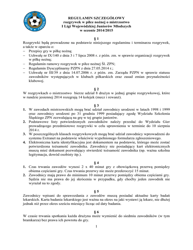 1 REGULAMIN SZCZEGÓŁOWY rozgrywek w piłce nożnej o