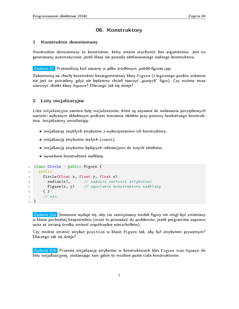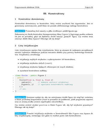 Zadanie 04* Zauwa», »e konstruktory w klasie