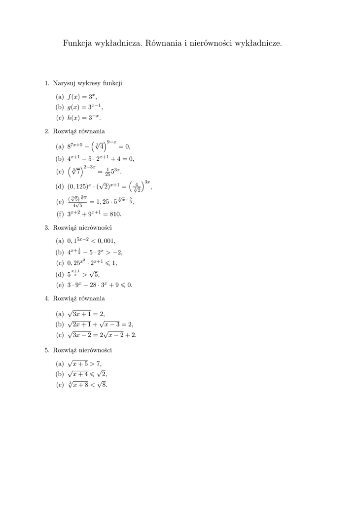 Funkcja wykładnicza. Równania i nierówności wykładnicze.