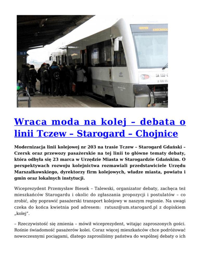 Wraca moda na kolej - Starogard Gdański Urząd Miasta