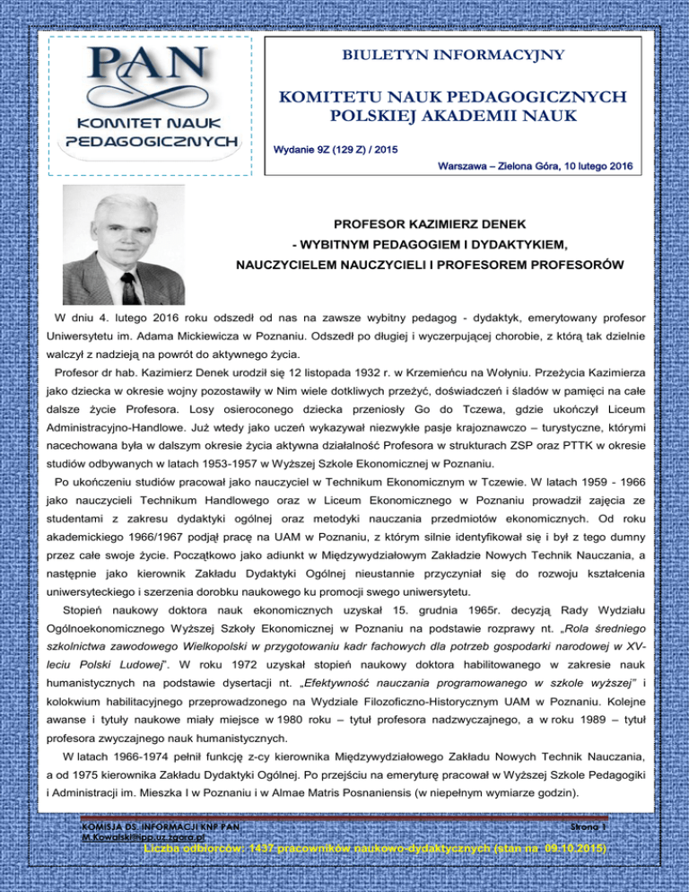 WSPOMNIENIE Komitet Nauk Pedagogicznych PAN
