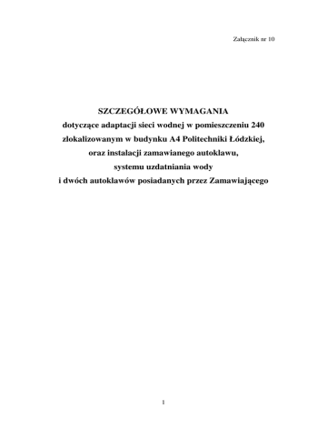SZCZEGÓŁOWE WYMAGANIA dotyczące adaptacji sieci wodnej w