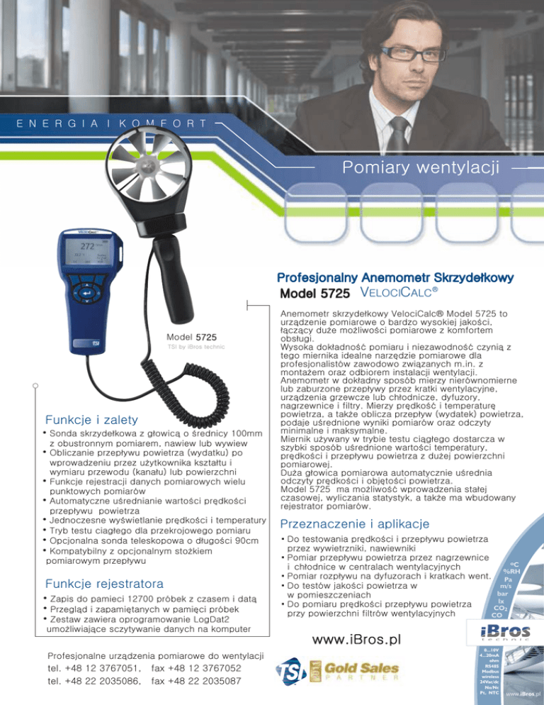 E N E R G I A I K O M F O R T Pomiary wentylacji Profesjonalny Anemometr Skrzydełkowy Model 5725 VELOCICALC ® Model 5725 TSI by iBros technic Funkcje i zalety Sonda skrzydełkowa z głowicą o średnicy 100mm z obustronnym pomiarem, nawiew lub wywiew Obliczanie przepływu powietrza (wydatku) po wprowadzeniu przez użytkownika kształtu i wymiaru przewodu (kanału) lub powierzchni Funkcje rejestracji danych pomiarowych wielu punktowych pomiarów Automatyczne uśrednianie wartości prędkości przepływu powietrza Jednoczesne wyświetlanie prędkości i temperatury Tryb testu ciagłego dla przekrojowego pomiaru Opcjonalna sonda teleskopowa o długości 90cm Kompatybilny z opcjonalnym stożkiem pomiarowym przepływu Funkcje rejestratora Zapis do pamieci 12700 próbek z czasem i datą Przegląd i zapamiętanych w pamięci próbek Zestaw zawiera oprogramowanie LogDat2 umożliwiające sczytywanie danych na komputer Profesjonalne urządzenia pomiarowe do wentylacji tel. +48 12 3767051, fax +48 12 3767052 tel. +48 22 2035086, fax +48 22 2035087 Anemometr skrzydełkowy VelociCalc® Model 5725 to urządzenie pomiarowe o bardzo wysokiej jakości, łączący duże możliwości pomiarowe z komfortem obsługi. Wysoka dokładność pomiaru i niezawodność czynią z tego miernika idealne narzędzie pomiarowe dla profesjonalistów zawodowo związanych m.in. z montażem oraz odbiorem instalacji wentylacji. Anemometr w dokładny sposób mierzy nierównomierne lub zaburzone przepływy przez kratki wentylacyjne, urządzenia grzewcze lub chłodnicze, dyfuzory, nagrzewnice i filtry. Mierzy prędkość i temperaturę powietrza, a także oblicza przepływ (wydatek) powietrza, podaje uśrednione wyniki pomiarów oraz odczyty minimalne i maksymalne. Miernik używany w trybie testu ciągłego dostarcza w szybki sposób uśrednione wartości temperatury, prędkości i przepływu powietrza z dużej powierzchni pomiarowej. Duża głowica pomiarowa automatycznie uśrednia odczyty prędkości i objętości powietrza. Model 5725 ma możliwość wprowadzenia stałej czasowej, wyliczania statystyk, a także ma wbudowany rejestrator pomiarów. Przeznaczenie i aplikacje § Do testowania prędkości i przepływu powietrza przez wywietrzniki, nawiewniki § Pomiar przepływu powietrza przez nagrzewnice oC i chłodnice w centralach wentylacyjnych %RH § Pomiar rozpływu na dyfuzorach i kratkach went. Pa § m/s Do testów jakości powietrza w bar w pomieszczeniach lx § Do pomiaru prędkości przepływu powietrza CO2 przy powierzchni filtrów wentylacyjnych CO www.iBros.pl 0...10V 4...20mA ohm RS485 Modbus wireless 24Vac/dc No/Nc Pt, NTC www.iBros.pl E N E R G I A I K O M F O R T Urządzenia pomiarowe wentylacji Specifikacja Model 5725 VELOCICALC ® Prędkość Zakres Dokładność 0,25 ... 30 m/s 0,1% odczytu lub 0,02 m/s, którakolwiek wartość jest większa Wymiary przewodów/kanałów 2 Zakres od 0 do 16m Przepływ objętościowy 3 Zakres Rzeczywista wartość [m /h]jest funkcją prędkości powietrza i powierzchni przekroju np. przewodu wentylacyjnego Temperatura Zakres od 0 do 60oC o Dokładność 0,5 C o Rozdzielczość 0,1 C Zakres temperatur pracy dla głowicy pomiar. od 0 do 60oC o dla elektroniki od 5 do 45 C o Temperatura od - 20 do 60 C przechowywania Rejestracja danych do pamięci miernika Rejestracja 12 700+ próbekoznaczenia Oznaczenie ID testów 100 zestawów pomiarowych Stożki pomiaru wydatku powietrza Zastosowanie stożków kondycjonujących przepływające powietrze pozwala na szybkie i dokładne zwiększenie użyteczności anemometru skrzydełkowego. Jest to ekonomiczny sposób pozwalający na poszerzenie możliwości miernika VelociCalc 5725 przekształcając go w szybkie narzędzie do bilansowania rozpływów powietrza instalacji powietrznych. Zalety i profity ¡ Do wyboru stożki o przekroju prostokątnym lub okrągłym ¡ Możliwość pomiaru przepływu objętościowego przez nagrzewnice, dyfuzory i kanały liniowe. ¡ Szybki i dokładny odczyt objętości przepływającego powietrza. ¡ Doskonały wybór dla małych nagrzewnic. Każdy zestaw przepływu TSI (nr. 801749) zawiera stożek: Prostokątny 285 x 235 mm (11.2 x 9.2 in.) Okragły 180 mm (7.1 in.) średnica Oprogramowanie na PC LogDat2 program do sczytywania danych na komputer Profesjonalna jakość pomiaru. Częstotliwość zapisu danych do pamięci miernika od 1 sekundy do 1 godziny Stała czasowa wybieralna przez użytkownika Wymiary zewnętrzne 8,4cm x 17,8cm x 4,4cm www.anemometry.pl www.iBros.pl Polski dystrybutor. Waga z bateriami 0,27 kg Zasilanie Cztery baterie AA lub opcjonalnie zasilacz AC Certykikat Certyfikat kalibracji miernika z sondą. oC %RH Pa m/s bar lx CO2 CO Producent informuje o możliwości zmiany specyfikacji bez informacji. Więcej informacji: skontaktuj się z doradcą lub wejdź na www.tsi.com oraz www.ibros.pl Dystrybutor na Polskę urządzeń marki TSI Incorporated: tel.+48 12 3767051, fax+48 12 3767052 ul.Fredry 2, 30605 Kraków tel.+48 22 2035086, fax+48 22 2035087 [email protected] www.iBros.pl Profesjonalne urządzenia pomiarowe i automatyki dla sektora HVAC. iBros technic jako Złoty Partner TSI jest gwarancją jakości urządzeń i profesjonalnej obsługi Klienta! 0...10V 4...20mA ohm RS485 Modbus wireless 24Vac/dc No/Nc Pt, NTC www.iBros.pl