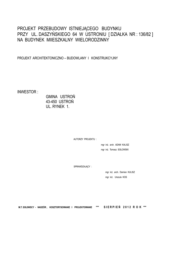 M.T. SOŁ0WSCY - NADZÓR , KOSZTORYSOWANIE I PROJEKTOWANIE