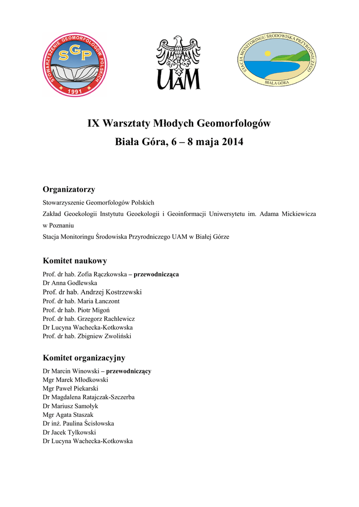IX Warsztaty Młodych Geomorfologów Biała Góra, 6