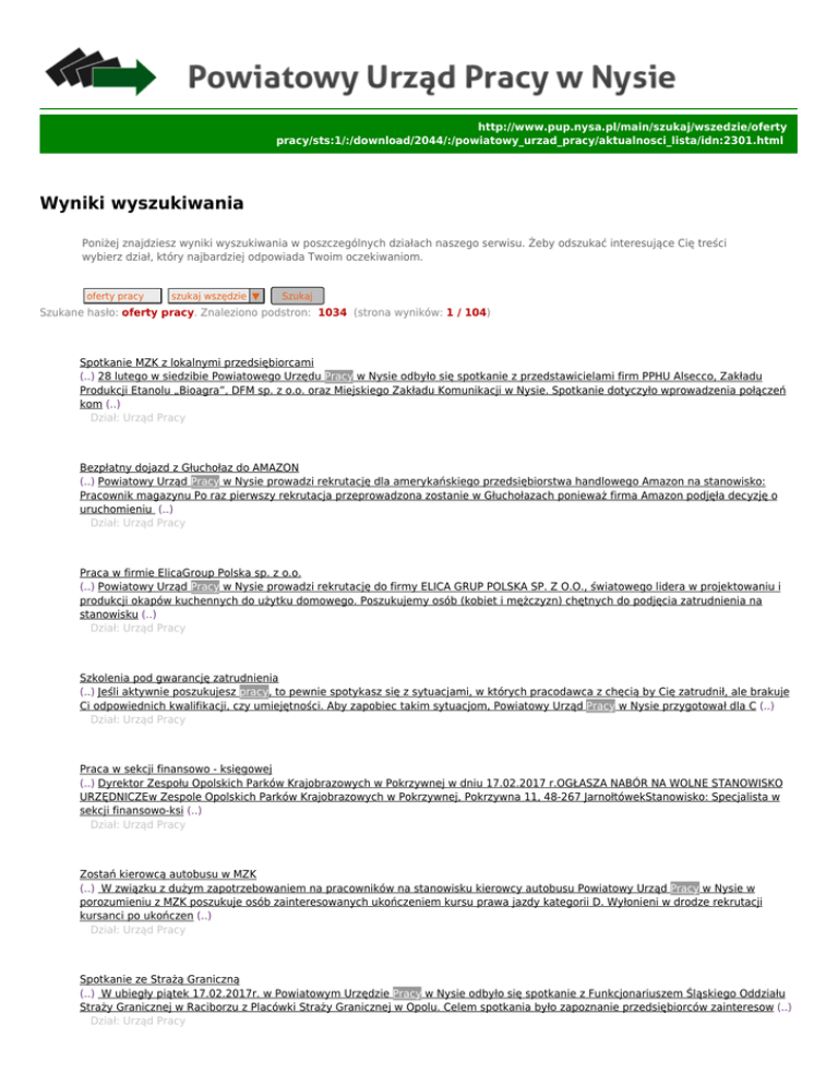 Wyniki wyszukiwania - Powiatowy Urząd Pracy w Nysie