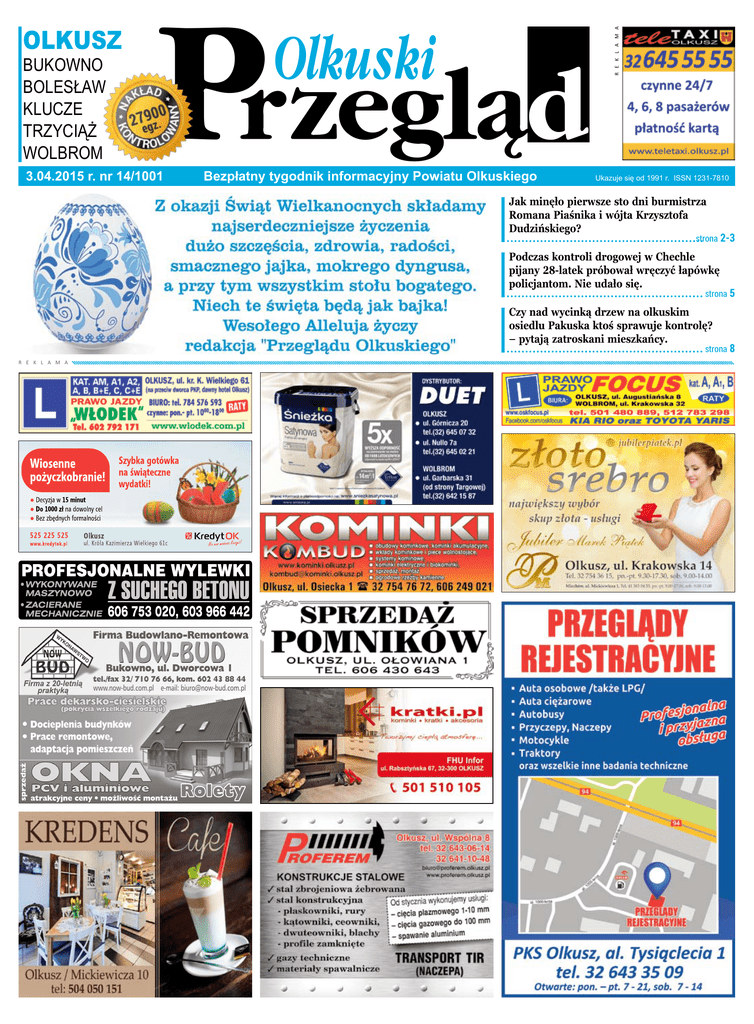 BUKOWNO BOLESŁAW KLUCZE TRZYCIĄŻ WOLBROM Przegl¹d 3.04.2015 r. nr 14/1001 Olkuski Bezpłatny tygodnik informacyjny Powiatu Olkuskiego R E K L A M A OLKUSZ Ukazuje się od 1991 r. ISSN 1231-7810 Jak minęło pierwsze sto dni burmistrza Romana Piaśnika i wójta Krzysztofa Dudzińskiego? strona 2-3 Podczas kontroli drogowej w Chechle pijany 28-latek próbował wręczyć łapówkę policjantom. Nie udało się. strona 5 Czy nad wycinką drzew na olkuskim osiedlu Pakuska ktoś sprawuje kontrolę? – pytają zatroskani mieszkańcy. R E K L A M A strona 8 2 | 3 kwietnia 2015 | Przegląd Olkuski Bliższa i dalsza przyszłość budynku starostwa olkusz Skąd możemy dostać dotacje? Wiola Woźniczko Budynek dawnego starostwa zostanie uporządkowany, a w ciągu kilku miesięcy jego elewacja będzie zabezpieczona. Władze miasta przedstawiają też źródła, z których można uzyskać środki na renowację zabytku. Co zatem czeka gminny budynek w najbliższym czasie? Klasycystyczny zabytek wygląda fatalnie zarówno z zewnątrz, jak i wewnątrz. Przede wszystkim stał się on składowiskiem różnego rodzaju przedmiotów. O uporządkowanie zabytku oraz wskazanie możliwości pozyskania dotacji na jego odnowę zwrócił się do burmistrza radny Michał Masłowski. Co na to włodarz miasta? Aby rozpatrzyć wszelkie możliwości ubiegania się o zewnętrzne środki, należy określić cel, na jaki zostanie zagospodarowany obiekt. Burmistrz Roman Piasnik informuje, że wskazując źródła zewnętrznych dotacji na ratowanie budynku, założono adaptację zabytkowych pomieszczeń na działalność muzealną lub komercyjną. - W zabytkowych piwnicach kamienicy stanowiącej nie- Elewacja i sprzątanie w pierwszej kolejności Jak informuje burmistrz Roman Piaśnik, niebawem ma zostać ogłoszony przetarg na wykonanie prac zabezpieczających i konserwatorskich elewacji budynku. Przede wszystkim chodzi o badania konserwatorskie, usunięcie fragmentów tynku grożącego odpadnięciem, wymianę rynien. Wszelkie roboty powinny być wykonane do końca czerwca. Na razie nie wiadomo, czy na ścianie od strony rynku pojawi się specjalna siatka z pierwotnym wizerunkiem elewacji, której koszt oceniono na kilkanaście tys. złotych. Decyzja ma zostać podjęta po realizacji prac zabezpieczających i ocenie efektu końcowego. W planach na najbliższą przyszłość jest też uporządkowanie obiektu, przede wszystkim z pozostałości po rewitalizacji rynku. Jeśli finanse gminy pozwolą, sukcesywnie będą odgruzowywane piwnice. Na razie, z powodu braku innego miejsca, w budynku przechowane zostaną dekoracje świąteczne i elementy wyposażenia drogowego. A R T Y K U Ł gdyś budynek Starostwa powstałaby ekspozycja poświęcona najstarszej historii obiektu, ze szczególnym uwzględnieniem działalności w tym miejscu urzędu górniczego oraz mennicy królewskiej. Cześć naziemna dwukondygnacyjnego budynku byłaby przeznaczona na komercyjna działalność gastronomiczną oraz salę konferencyjno - wykładową - podkreśla burmistrz Piasnik. Jakie propozycje przedstawił włodarz miasta? Pierwsza z nich, Rewitalizacja Przestrzeni Regionalnej, mieści się w Małopolskim Programie Rozwoju Regionalnego na lata 2014 – 2020. Nie są jednak jeszcze opracowane dokładne wytyczne programu. Wiadomo natomiast, że dotację na zabezpieczenie, renowację i dosto- sowanie obiektu do nowych funkcji gospodarczych i kulturalnych można uzyskać w ramach innego działania: Dziedzictwo regionalne. - Czynnikiem ograniczającym jest maksymalna kwota wsparcia, która wynosi 5 mln złotych - zaznacza burmistrz Roman Piaśnik. Kolejne dwie możliwości pozyskania środków finansowych mieszczą się w Programie Ministra Kultury i Dziedzictwa Narodowego. W działaniu „Dziedzictwo kulturowe - ochrona zabytków” można uzyskać finansowe wsparcie na zabezpieczenie i zachowanie budynku dawnego starostwa. Bez szans na dotacje są projekty zakładające adaptację, przebudowę lub znacząca rekonstrukcje obiektów. W pierwszej kolejności dofinansowanie otrzymają najbardziej zagrożone obiekty lub najcenniejsze zabytki: wpisane na listę Switoego Dziedzictwa Kulturowego i Przyrodniczego Ludzkości UNESCO, uznane za pomniki historii oraz posiadające wyjątkową wartość historyczną, artystyczną lub naukową. Regulaminowe zasady dopuszczają całkowite sfinansowanie zadania, jednak tylko w szczególnych przypadkach (wyjątkowa wartość zabytku, stan obiektu wymagający niezwłocznego przeprowadzenia prac, konieczność przeprowadzenia technologicznie złożonych robót). Ustawowa dotacja to maksymalnie 50 proc. koniecznych nakładów. Z kolei w ramach działania „Rozwój infrastruktury kultury” finansowe wsparcie przysługuje na inwestycje służące prowadzeniu działalności kulturalnej. Jeśli kwota wnioskowanego dofinansowania nie przekracza 3 mln złotych, wówczas dotacja może pokryć 75 proc. budżetu inwestycji. Gdy kwota jest większa niż 3 mln złotych, w grę wchodzi 50 proc. budżetu. W obydwu ministerialnych przypadkach dotacja nie może dotyczyć komercyjnej działalności hotelowo – gastronomicznej. Wiemy, co z zabytkiem stanie się w najbliższym czasie. Nadal natomiast nie wiadomo, czy i kiedy radni zdecydują o modernizacji obiektu lub też jego sprzedaży. S P O N S O R O WA N Y Zmiany organizacyjne w Urzędzie Miasta i Gminy Olkusz Wśród priorytetów, które Roman Piaśnik wyznaczył sobie wraz z objęciem funkcji Burmistrza Miasta i Gminy Olkusz, znajduje się poprawa wizerunku i organizacji pracy Urzędu oraz optymalizacja kosztów zatrudnienia. Listę dotychczasowych decyzji kadrowych uzupełnia najnowsza, zgodnie z którą od 1 kwietnia br. w olkuskim magistracie zmieniona została struktura Urzędu. Zmiany obejmują cztery komórki organizacyjne Urzędu Miasta i Gminy w Olkuszu. Zarządzeniem Burmistrza połączone zostały: Wydział Urbanistyki i Architektury z Biurem Miejskiego Konserwatora 
