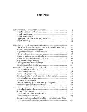 Spis treści punkt wyjścia. impulsy literackości ............................................. Impuls formalno-językowy ............................................................. Impuls emocjonalny ........................................................................ Impuls ideologiczny ......................................................................... Dygresja o (literaturoznawczej) metaforze ................................... Impuls naukowy ............................................................................... 9 10 12 27 35 39 rozdział 1. struktury literackości ............................................... „Sprzecznościowa” koncepcja literackości. Model uniwersalny Awarie i energie komunikacyjne .................................................... Między wyrażalnym a niewyrażalnym .......................................... Niewyrażalne czy niewyrażone? ..................................................... Między widzialnym a niewidzialnym ............................................ Wiersz księżycowy Bolesława Leśmiana ....................................... Między ontologią a poetyką ............................................................ Ontologia dzieła „tektonicznego” ................................................... Ontologia „modelu świata” ............................................................. rozdział 2. paradygmaty literackości ......................................... Literatura jako paradygmat ............................................................. Literatura wyczuwalna .................................................................... Rozstaje leksykograficzne ............................................................... Termin „literatura” w kalejdoskopie historycznym ..................... Literatura literaturoznawców .......................................................... Wyobraźnia limitatywna ................................................................. Granice literatury, granice historii, granice granic ...................... Komunikacyjny paradygmat literacki ........................................... rozdział 3. literackość w czasoprzestrzeniach recepcji ..... Literackość rodowodowa ................................................................ Szeregi (auto)recepcji ...................................................................... Literatura z literatury, ale i skądinąd ............................................. Literatura in statu nascendi ............................................................. Szeregi (auto)komunikacji literackiej w poetykach autorskich i w specjalizacjach badawczych ...................................................... 45 46 62 67 78 83 95 102 113 123 135 136 138 142 147 151 156 158 161 169 169 170 173 185 203 6 SP I S T R E Ś C I rozdział 4. metafory, interpretacje, wielkie sylwy ................. Metafora a interpretacja .................................................................. Przykład: róże Stanisława Grochowiaka ....................................... Porwani przez przenośnie ............................................................... Literackość interpretacji .................................................................. Całości literackie w perspektywie gradacyjnej ............................. Sylwy mniejsze i większe ................................................................. Wielka interpretacja wielkiej sylwy ............................................... Przykład: mickiewicziana ............................................................... Pierwszy cel aksjologiczny, czyli wielkość i małość ..................... Drugi cel aksjologiczny, czyli aktualność i historyczność .......... Cele komunikacyjne, czyli pewność i niepewność sensu ........... Wielka interpretacja Awangardy Krakowskiej ............................. Awangarda rozrzucona ................................................................... Krąg pierwszy: rozrzucenie nomenklatury .................................. Krąg drugi: rozrzucenie wyznaczników ........................................ Krąg trzeci: rozrzucenie czasoprzestrzeni .................................... rozdział 5. strukturalizm powrotny ........................................... Zwroty, odwroty, powroty (metodologiczne) ............................... Zwrot antystrukturalistyczny .......................................................... Spór o wartościowanie ..................................................................... Przymusy aksjologiczne .................................................................. Badawcze normy stabilne ............................................................... Odwrót od literatury ....................................................................... Ogród rozkoszy prywatnych czy nowy instytucjonalizm? ......... Dekonstrukcja? – Raczej eksperyment ......................................... Miejsce w historii ............................................................................. Oświetlenia strukturalizmu ............................................................ rozdział 6. paraliteratura. Obszar trzeci, a właściwie pierwszy ........................................................................................... Jeszcze jeden spór: o dychotomie ................................................... Załamania dychotomii ..................................................................... Pogranicze czy obszary mowy w pełni suwerenne? ..................... Paraliteratura a specjalizacje mowy ............................................... Próbka paraliteratury: świat w liście .............................................. rozdział 7. sobowtóry i refleksy literackości w uniwersum semiotycznym ................................................................................. Literackość przestrzeni ...............................................................
