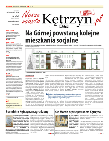 HISTORIA: 1050-lecie Chrztu Polski ►► str.10 CZWARTEK 14 kwietnia 2016 Nr 8 (80) DWUTYGODNIK www.nmketrzyn.pl ISSN 2300-309X WIEŚCI Z MIASTA Rozmowa z Dagmarą Iwaniuk, przewodniczącą Rady Nadzorczej Spółdzielni Mieszkaniowej „Pionier” Kto zasiądzie na fotelu Prezesa SM „Pionier”? ►str. 4 WIEŚCI Z MIASTA Zatrudnienie dla ponad 100 osób Rada Miejska w Kętrzynie 5 kwietnia podjęła uchwałę w sprawie przyjęcia planu robót publicznych na 2016 rok. Oznacza to, że bezrobotni mogą liczyć na zatrudnienie. Na Górnej powstaną kolejne mieszkania socjalne W Ratuszu, 8 kwietnia podpisano umowę na “Adaptację budynku przy ul. Górnej 8 na mieszkania socjalne w Kętrzynie”. W nieruchomości po kętrzyńskim KOMEC-u mają powstać 23 dwupokojowe lokale. ►str. 7 SPORT W czerwcu w Kętrzynie czeka nas przedsmak nadchodzącego Euro 2016 W tym roku po raz kolejny całą Europę pochłonie sportowe szaleństwo związane z rozgrywanym we Francji Euro 2016. Dla Polski będzie to także czas wielkich emocji, związany z awansem do mistrzostw po wygranym meczu z Irlandią, który zakończył się wynikiem 2:1. ►str. 9 ROZMAITOŚCI Jeden pożar zamiast trzech? Pożary kętrzyńskiego młyna wzbudziły duże zainteresowanie wśród mieszkańców miasta o czym świadczą m.in. wielotysięczne odsłony artykułów na ten temat na stronie internetowej naszej gazety i kanale youtube Kętrzyńskiej Telewizji Internetowej. Jak się okazuje dotychczasowe plotki o podpaleniu mogą znaleźć swoje potwierdzenie. Problem w tym, że zdaniem biegłych młyn płonął tylko raz, a nie trzy razy. ►str. 7 Liczba wydania 23 mieszkania powstaną w budynku socjalnym przy ulicy Górnej. ►Wizualizacja elewacji budynku przy ul. Górnej. EWA BRZOSTEK Dokumenty podpisali Krzysztof Hećman, burmistrz Miasta Kętrzyn przy kontrasygnacie Władysława Litwinowicza, skarbnika Miasta oraz wykonawca, firma Warmińskie Przedsiębiorstwo Budowlane Rombud sp. z o.o., którą reprezentowali Adam Tęgowski – dyrektor ds. technicznych i Zbigniew Nowowiejski – zastępca prezesa. Inwestycja przy ulicy Górnej zakłada realizację 23 dwupokojowych mieszkań socjalnych z aneksem kuchennym o powierzchni od 30 do 42 metrów kwadratowych w budynku po KOMEC-u. Jej wartość to 2 326 693 mln zł, z czego kwota 930 677 tys. zł to dofinansowanie z Banku Gospodarstwa Krajowego. - To nasz kolejny projekt w swoim zamiarze bardzo szlachetny. To jest bardzo dobry deal, bardzo dobry pomysł. Praca i pasja, pasja i praca to jest klucz do sukcesu. Od lat mamy listę osób, które mają potrzeby mieszkaniowe w skutek wielu sytuacji życiowych, nieraz My szukamy takich rozwiązań, aby pomóc tym, którzy mają problemy mieszkaniowe, ale też dajemy pracę, ponieważ inwestujemy i w Kętrzynie ciągle coś budujemy. Większość z nas ma mieszkania dzięki swojej pracy, czy rodzicom, a my kierujemy tę inwestycję, do tych, którzy nie mają – mówi Krzysztof Hećman, Burmistrz Miasta Kętrzyn. własnych wyborów są w takim, a nie innym miejscu w swoim życiu, ale to jest człowiek i jemu też trzeba pomóc z pasją i pracą. To nie pierwsza inwestycja o tym charakterze. Od marca do listopada 2014 roku Miasto wybudowało dwa budynki socjalne wraz z infra- Termin realizacji to wrzesień 2017 roku. “ Szukamy takich rozwiązań, aby pomóc tym, którzy mają problemy mieszkaniowe, ale też dajemy pracę, ponieważ inwestujemy i w Kętrzynie ciągle coś budujemy. Burmistrz Kętrzyna nagrodzony W miniony czwartek Marszałek Województwa Warmińsko – Mazurskiego Gustaw Marek Brzezin podczas uroczystej Gali Sportu uhonorował sportowców, kluby sportowe oraz gminy aktywnie promujące sport. Wśród wyróżnionych gmin województwa warmińsko – mazurskiego za upowszechnianie i rozwój sportu w gminie oraz za wspieranie młodych, utalentowanych sportowców znalazł się również Kętrzyn. Wyróżnienie z rąk Marszałka odebrał Bur- mistrz Miasta Kętrzyn Krzysztof Hećman. Jak podaje portal wama-sport Gmina Miejska Kętrzyn uplasowała się na 6. miejscu w województwie pod względem zdobytych punktów w ogólnopolskim współzawodnictwie sportowym młodzieży. Gmina zajęła 145. miejsce w Polsce w Ogólnopolskim Systemie Sportu Młodzieżowego ze 182,27 pkt. Wśród wyróżnionych Miast znalazły się również m.in. Olsztyn, Elbląg, Mrągowo, Iława, Ostróda, Giżycko, Ełk, Szczytno i Lidzbark Warmiński. c.d. ►str. 3 strukturą przy ul. Chopina, w których znalazło dach nad głową dwadzieścia rodzin. Wartość tej inwestycji to 2 300 000 mln zł, z czego 700 tysięcy zł to dofinansowanie z BGK. W tej chwili przy ul. Ogrodowej jest budowany kolejny trzykondygnacyjny obiekt, w którym powstanie 26 mieszkań socjalnych o powierzchni od 25 do 49 metrów kwadratowych. Wartość tej inwestycji to 3 300 000 mln złotych z dofinansowaniem z BGK w wysokości 993 121 tys. zł. Wykonawcą przedsięwzięcia jest również firma Warmińskie Przedsiębiorstwo Budowlane Rombud sp. z o.o. Budynek ma zostać oddany do użytku we wrześniu 2016 roku. Św. Marcin będzie patronem Kętrzyna W czasie ostatniej (5 kwietnia 2016 r.) sesji Rady Miejskiej Radni podjęli uchwałę będącą inicjatywą Burmistrza Miasta Kętrzyn o ustanowieniu św. Marcina Patronem Miasta. Postać św. Marcina związana jest nierozerwalnie z historią Miasta Kętrzyn. Święto Miasta przypadające w rocznicę nadania praw miejskich w 1357 r. datuje się na 11 listopada. Tego dnia obchodzone jest również święto św. Marcina. - Dla mnie jest rzeczą naturalną, że św. Marcin będzie patronem Kętrzyna. Nie bez znaczenia jest fakt, że data nadania praw miejskich zbiega się ze świętem św. Marcina. Nie jest to zapewne dziełem przypadku – stwierdza ks. dr Kazimierz Żuchowski, proboszcz parafii św. Stanisława Kostki w Karolewie. c.d. ►str. 5 PRAWO / WIEŚCI Z MIASTA Podstawę prawną do przekazywania na rzecz organizacji pożytku pub