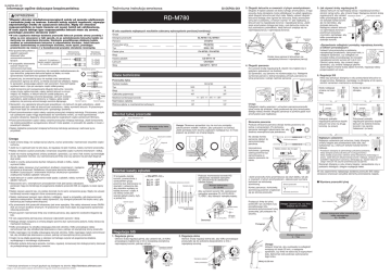 SI-5XP0A-001-03 Informacje ogólne dotyczące bezpieczeństwa Techniczna instrukcja serwisowa SI-5XP0A-001 OSTRZEŻENIE "Długość okresów międzykonserwacyjnych zależy od sposobu użytkowania i warunków jazdy na rowerze. Łańcuch należy czyścić regularnie, używając odpowiedniego środka do czyszczenia łańcucha. Nigdy nie stosować rozpuszczalników na bazie kwasów ani zasad, takich jak odrdzewiacze. W razie użycia takiego typu rozpuszczalnika łańcuch może się zerwać, powodując poważne obrażenia ciała". • W celu uzyskania dobrego działania przerzutki łańcuch posiada stronę przednią i tylną; są one oznaczone w taki sposób, że po zainstalowaniu łańcucha będzie on zwrócony we właściwym kierunku. Uzyskanie prawidłowego działania będzie możliwe po zainstalowaniu łańcucha w odpowiednim kierunku. Jeżeli łańcuch zostanie zamontowany w przeciwnym kierunku, może spaść, powodując przewrócenie się roweru i w konsekwencji poważne obrażenia rowerzysty. • Do łączenia łańcuchów o Wyciskacz Wzmocniony Łańcuch wąskich ogniwach do łańcucha sworzeń łączący stosować tylko wzmocnione sworznie z rowkiem (3) Łańcuch 10-rzędowy o TL-CN32 łączące. bardzo wąskich ogniwach TL-CN23 • W przypadku stosowania do rowerów górskich TL-CN27 z rowkiem (2) sworzni innych niż wzmocnione lub kiedy Powierzchnia ogniwa stosowany jest sworzeń wzmocniony lub narzędzie niedostosowane do typu łańcucha, połączenie łańcucha będzie za słabe, co może spowodować rozerwanie lub spadanie łańcucha. • Upewnij się, że sworzeń łączący nie wystaje znad zewnętrznej Sworzeń łączący powierzchni ogniwa od strony, od której sworzeń był wkładany. Należy to sprawdzić, przesuwając palcem nad sworzniem. Sworzeń będzie wystawał nieco z tyłu po usunięciu części odłamywanej. • Jeżeli konieczne jest wyregulowanie długości łańcucha z powodu Wzmocniony sworzeń łączący zmiany liczby zębów koronek, należy skrócić łańcuch w innym miejscu niż miejsce, w którym łańcuch został połączony, za pomocą wzmocnionego sworznia łączącego. Łańcuch zostanie uszkodzony, jeżeli zostanie skrócony w miejscu, gdzie został Sworzeń ogniwa Sworzeń ogniwa połączony za pomocą wzmocnionego sworznia łączącego. • Sprawdzić, czy naprężenie łańcucha jest prawidłowe i czy łańcuch nie jest uszkodzony. Jeżeli naprężenie jest zbyt małe lub łańcuch jest uszkodzony, należy wymienić łańcuch. W przeciwnym razie może dojść do zerwania łańcucha i poważnego zranienia. • Przed zamontowaniem części należy uważnie przeczytać niniejszą instrukcję. Poluzowane, zużyte lub uszkodzone części mogą doprowadzić do wywrócenia roweru, co może spowodować poważne obrażenia. Zalecamy stosowanie jedynie oryginalnych części zamiennych Shimano. • Przed zamontowaniem części należy uważnie przeczytać niniejszą instrukcję. Jeżeli komponenty nie zostaną prawidłowo wyregulowane, łańcuch może spadać, co prowadzi do upadku z roweru i poważnych obrażeń. • Należy dokładnie przeczytać niniejszą techniczną instrukcję serwisową i zachować ją na przyszłość. RD-M780 W celu uzyskania najlepszych rezultatów zalecamy wykorzystanie poniższej kombinacji. Grupa XT Łańcuch OT-SP41 Pancerz Przerzutka tylna RD-M780 Typ SGS / GS ag -15 T ag -1 3T 10 Biegi Dodać dwa ogniwa (z łańcuchem na największej koronce i największej tarczy) CS-M771-10 Kaseta zębatek CN-HG94 Łańcuch SM-SP17 / BT17 Ślizg 4. Długość pancerza (1) Luzować śrubę regulacyjną B, dopóki nie znajdzie się w położeniu pokazanym na ilustracji. (2) Sprawdzić, czy pancerz ma wystarczający luz. Następnie wyrównać pancerz z dolną krawędzią uchwytu pancerza na tylnej przerzutce i odciąć nadmiar pancerza. Dane techniczne Przerzutka tylna Oparcie pancerza Symbol modelu RD-M780 Typ SGS GS Biegi 10 10 Całkowita pojemność 43T Założyć łańcuch na najmniejszą tarczę i największą koronkę i obrócić ramię korby, aby zmienić biegi. Następnie obrócić śrubę regulacyjną B, aby ustawić Największa zębatka Najmniejsza zębatka kółko prowadzące tak, aby nie dotykało tylnej koronki ale nie tak blisko, aby dotykało łańcucha. Następnie ustawić łańcuch na najmniejszej koronce i Śruba powtórzyć powyższe regulacyjna B czynności, pamiętając, aby kółko prowadzące nie dotknęło koronki. 35T Ustawić tylną przerzutkę w położeniu największego przełożenia, zatrzymać koło, a następnie sprawdzić, czy odległość od krawędzi kółka prowadzącego do krawędzi największej koronki wynosi od 5 do 6 mm. Obrócić ramię korby, aby zmienić biegi i sprawdzić, czy zmiana następuje płynnie. Jeżeli ulegnie zmianie liczba zębów koronek, regulację należy przeprowadzić od nowa. 6. Regulacja SIS Kilka razy poruszyć dźwignią w celu przesunięcia łańcucha na drugą koronkę. Następnie, naciskając na dźwignię aż do oporu, obrócić ramieniem mechanizmu korbowego. Kiedy następuje zmiana na trzeci bieg Kiedy nie słychać dźwięku Pokrętło regulacyjne Pokrętło regulacyjne Dokręcać pokrętło regulacyjne pancerza dopóki łańcuch nie wróci na drugą koronkę. (w prawo) Poluzować pokrętło regulacyjne pancerza dopóki łańcuch nie dotknie trzeciej koronki i nie zacznie hałasować. (w lewo) Pancerz Możliwe kombinacje koronek 11 - 32T, 11 - 34T, 11 - 36T Najmniejsza zębatka Różnica zębów w mechanizmie korbowym (1) (2) 11T 11T Uwaga: Odległość między oparciem i uchwytem pancerza przerzutki tylnej może się zmieniać, kiedy przesuwa się tylny amortyzator, dlatego należy określić długość pancerza w punkcie gdzie ruch amortyzatora jest najdłuższy. 18T 18T Montaż tylnej przerzutki Klucz imbusowy 5 mm Skracanie pancerza Uwaga: Okresowo sprawdzać czy nie ma luzu pomiędzy zakończeniem widełek i hakiem, jako pokazano na ilustracji. Jeżeli pomiędzy tymi d