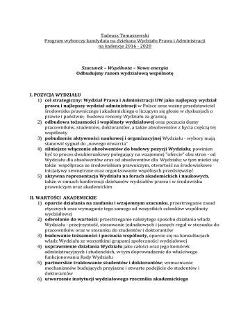 Tadeusz Tomaszewski Program wyborczy kandydata na dziekana