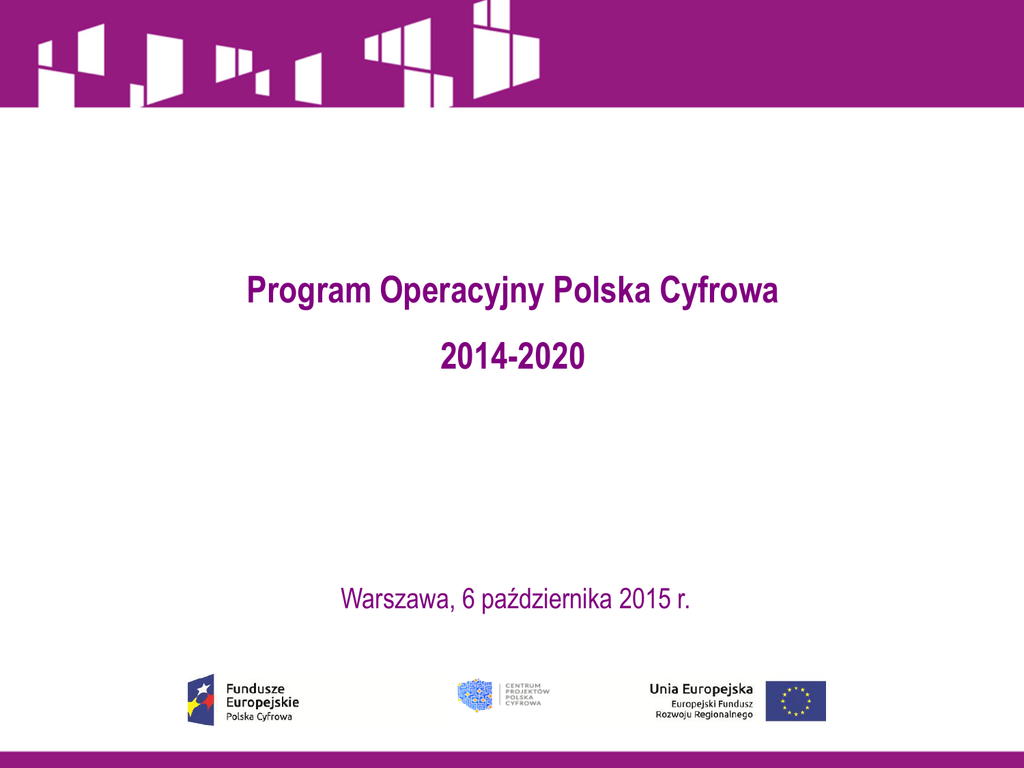 Program Operacyjny Polska Cyfrowa 2014-2020 Warszawa, 6 października 2015 r. Celem Programu Operacyjnego Polska Cyfrowa 2014-2020 jest wzmocnienie cyfrowych fundamentów rozwoju kraju, jako fundamenty te przyjęto: szeroki dostęp do szybkiego Internetu, efektywne i przyjazne dla użytkowników e-usługi publiczne oraz stale rosnący poziom kompetencji cyfrowych społeczeństwa. Wykorzystanie potencjału technologii cyfrowych jest jednym z priorytetów Polski na najbliższe lata. Obecny stan rozwoju infrastruktury szerokopasmowej i poziom jej wykorzystania, jest niski w porównaniu z większością krajów Unii Europejskiej, a także odległy od celów przyjętych w Europejskiej Agendzie Cyfrowej (EAC). POPC ma pomóc w wykorzystaniu przez Polskę prorozwojowych możliwości technologii cyfrowych. 2 Program Operacyjny Polska Cyfrowa podzielony jest na trzy osie priorytetowe, które odpowiadają najważniejszym obszarom cyfryzacji: I. Dostęp do szybkiego internetu Cel szczegółowy 1: Ograniczyć terytorialne różnice w możliwości dostępu do szerokopasmowego internetu o wysokich przepustowościach. II. Rozwój dostępnych w sieci e-usług i zasobów Cel szczegółowy 2: Podniesienie dostępności i jakości e-usług publicznych Cel szczegółowy 3: Poprawa cyfrowej efektywności urzędów Cel szczegółowy 4: Zwiększenie dostępności i wykorzystania informacji sektora publicznego. III. Kompetencje cyfrowych umiejętności obywateli Cel szczegółowy 5: E-integracja i e-aktywizacja na rzecz zwiększenia aktywności oraz jakości korzystania z internetu Cel szczegółowy 6: Pobudzanie potencjału uzdolnionych programistów dla zwiększenia zastosowania rozwiązań cyfrowych w gospodarce i administracji. Rolę Instytucji Pośredniczącej dla wszystkich osi POPC pełni Centrum Projektów Polska Cyfrowa. 3 I oś priorytetowa POPC - Powszechny dostęp do szybkiego Internetu. Działanie 1.1 - Wyeliminowanie terytorialnych różnic w możliwości dostępu do szerokopasmowego internetu o wysokich przepustowościach. 4 W ramach I osi priorytetowej POPC Powszechny dostęp do szybkiego Internetu wspierane będą działania umożliwiające jak najszerszy dostęp do sieci szerokopasmowych przy jak najwyższych parametrach technicznych na obszarach, gdzie stwierdzono niedoskonałość rynku lub istotne nierówności w zakresie dostępu do sieci NGA. Wsparciem będą objęte projekty w zakresie budowy/rozbudowy lub przebudowy sieci dostępowych wraz z niezbędnymi odcinkami do węzłów sieci dystrybucyjnych lub szkieletowych, a także z sieciami szkieletowymi i dystrybucyjnymi. Realizowane sieci dostępowe będą zapewniać co najmniej parametry NGA (min. 30 Mb/s). Sieci szkieletowe i dystrybucyjne mogą być budowane/rozbudowywane i przebudowywane w zakresie niezbędnym do realizacji sieci dostępowych, a ich węzły szkieletowe i dystrybucyjne mogą być realizowane wyłącznie w lokalizacjach, które nie były przewidziane do realizacji w latach 2007-2013. Promowane będą rozwiązania umożliwiające w przyszłości dalsze podnoszenie parametrów, przy relatywnie niskim poziomie dodatkowych nakładów. W celu realizacji EAC może zostać wprowadzone wymaganie, by infrastruktura umożliwiała osiągnięcie parametrów min. 100 Mb/s. 5 Plan finansowy dla I osi POPC Kod regionu Wkład UE Wkład krajowy Finansowanie ogółem Regiony słabiej rozwinięte 951 824 737 167 969 072 1 119 793 809 Regiony lepiej rozwinięte 68 397 915 17 099 479 85 497 394 Kwota alokacji (wsparcie UE) dla I osi POPC wynosi 1 020 222 652 EUR. 6 Wybór projektów do dofinansowania w ramach I osi POPC: prowadzony będzie w trybie konkursowym; pierwszy konkurs został ogłoszony 30 września 2015 r.; do pierwszego konkursu wyznaczono 230 obszarów interwencji; termin składania wniosków o dofinansowanie planowany jest od 02 listopada do 30 grudnia 2015 r.; kwota środków przeznaczonych na dofinansowanie projektów w pierwszym konkursie wynosi 600 000 000,00 PLN; wnioski składane będą w formie elektronicznej za pośrednictwem platformy ePUAP (konieczne będzie posiadanie profilu zaufanego lub bezpiecznego podpisu elektronicznego weryfikowanego certyfikatem kwalifikowanym). 7 Obszary realizacji projektów w ramach I osi POPC: Wyznaczane zostały w oparciu o inwentaryzację przeprowadzoną przez Urząd Komunikacji Elektronicznej (dane wprowadzane do SIIS) oraz zostały poddane konsultacją społecznym (weryfikacja listy białych obszarów NGA oraz zebranie trzyletnich planów inwestycyjnych). Dla każdego z 230 obszarów interwencji została wskazana: - indywidualna, możliwa do uzyskania kwota dofinansowania (wyliczona w oparciu o model kosztowo-popytowy opracowany przez UKE); - indywidualna maksymalna intensywność wsparcia; - minimalna liczba gospodarstw domowych do objęcia zasięgiem na obszarze interwencji; - średnia wartość dofinansowania dla obszaru wynosi 3 750 662 PLN; - średnia wartość intensywności wsparcia wynosi 60,73 %. 10 Kryteria wyboru projektów do dofinansowania w ramach I osi POPC: 1. Formalne służące ocenie w zakresie zgodności wniosku o dofinansowanie z ogólnymi warunkami konkursu, w tym kryteria specyficzne dla: - wnioskodawcy - projektu Ocena TAK/NIE (łącznie 18 kryteriów). 2. Merytoryczne służące ocenie dostosowania projektu do ram i wymogów POPC oraz zakładające maksymalizację efektów projektów, w tym: - ocena TAK/NIE (łącznie 8 kryteriów) - wagi punktowe (łącznie 3 kryteria). 8 Kryteria wyboru projektów do dofinansowania w ramach I osi POPC: 1. 2. Formalne (ocena TAK/NIE): - dot. m.in. formy złożenia wniosku o dofinansowanie, kompletności i poprawności dokumentacji, kwalifkowalności wnioskodawcy w ramach działania, zapewnienia minimalnego pokrycia obszaru siecią NGA, zgodności projektu z zasadami horyzontalnymi, itd. Merytoryczne: - dot. m.in. adekwatności wskaźników produktu i rezultatu, spełnienia wymagań dla sieci NGA – POPC, przejrzystości i w