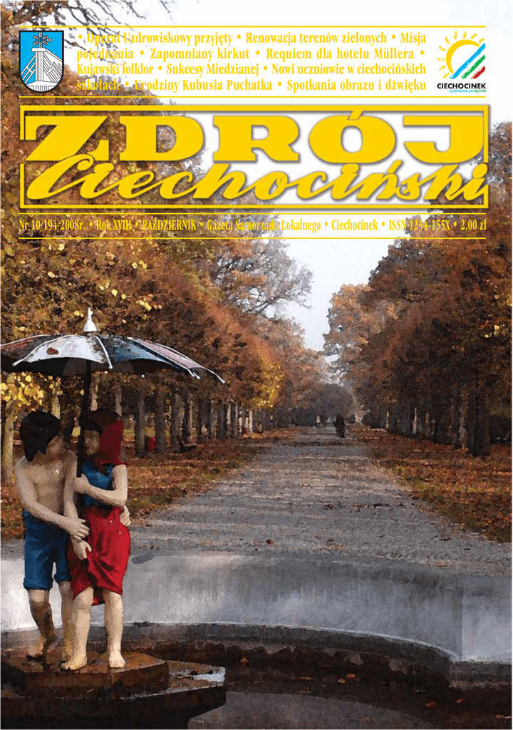 • Operat Uzdrowiskowy przyj´ty • Renowacja terenów zielonych • Misja pojednania • Zapomniany kirkut • Requiem dla hotelu Müllera • Kujawski folklor • Sukcesy Miedzianej • Nowi uczniowie w ciechociƒskich szko∏ach • Urodziny Kubusia Puchatka • Spotkania obrazu i dêwi´ku Nr 10/194/2008r. • Rok XVIII • PAèDZIERNIK • Gazeta Samorzàdu Lokalnego • Ciechocinek • ISSN 1234-155X • 2,00 z∏