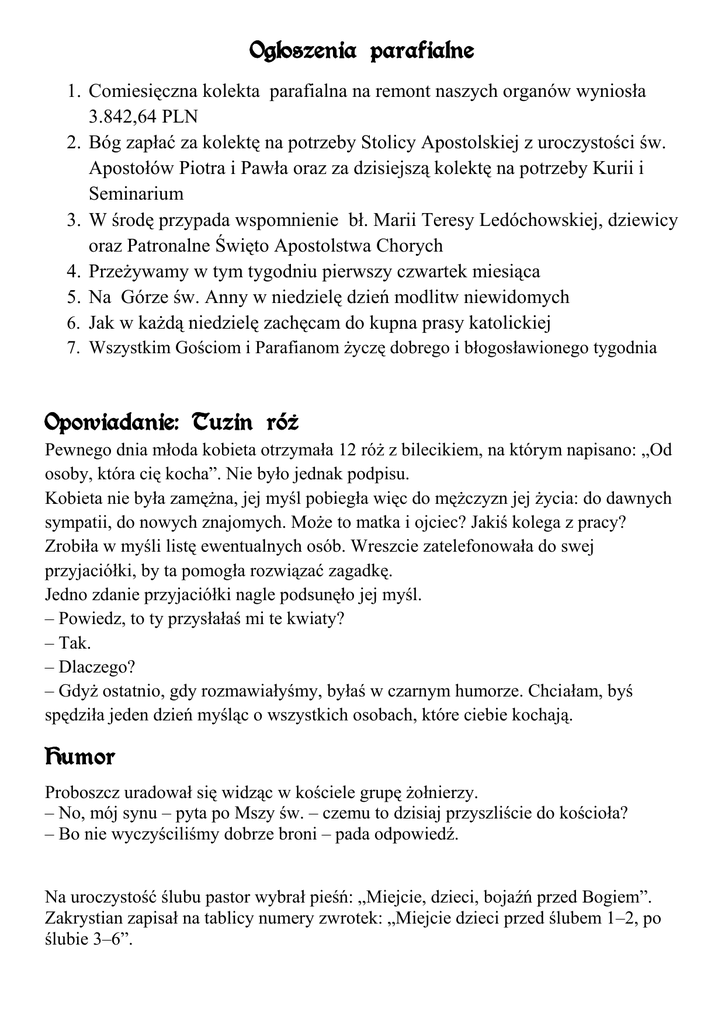 Ogłoszenia parafialne Opowiadanie: Tuzin róż Humor