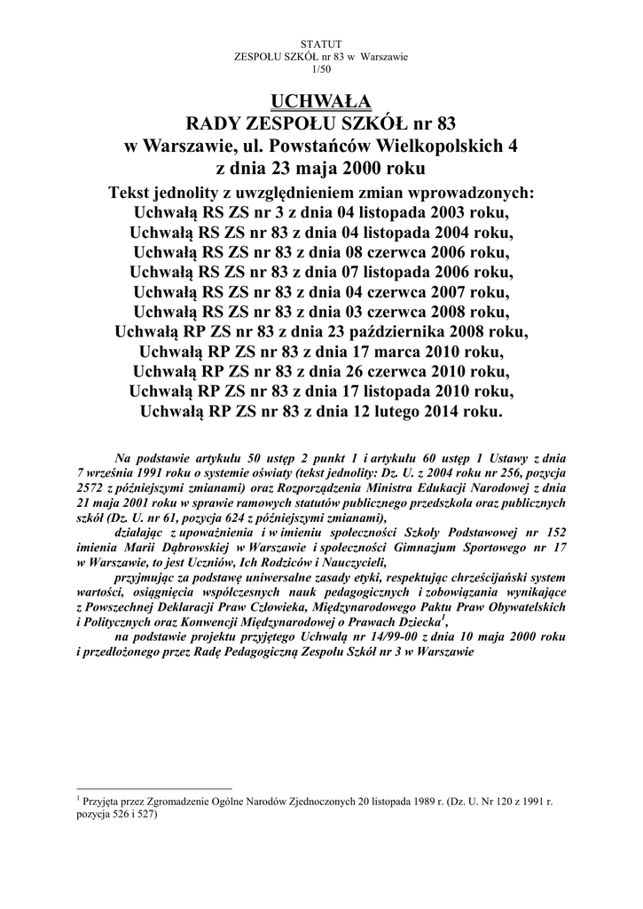 UCHWAŁA RADY ZESPOŁU SZKÓŁ nr 83 w Warszawie, ul