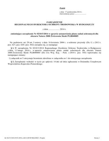 Projekt zarządzenia Regionalnego Dyrektora Ochrony Środowiska