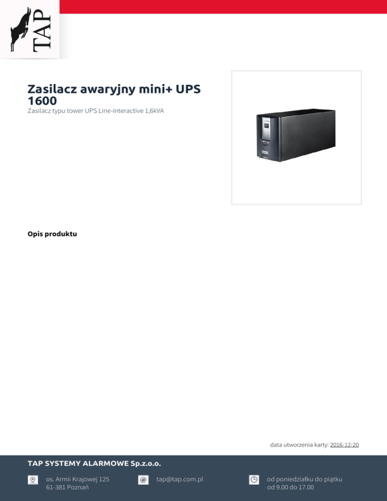 Zasilacz awaryjny mini+ UPS 1600 - TAP