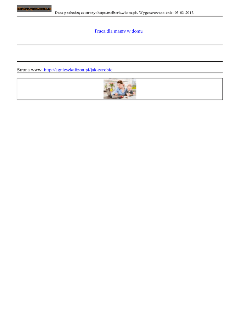 Dane pochodzą ze strony: http://malbork.wkom.pl/. Wygenerowano dnia: 03-03-2017. Praca dla mamy w domu Strona www: http://agnieszkalizon.pl/jak-zarobic