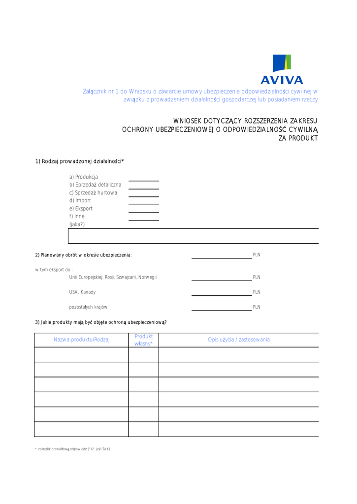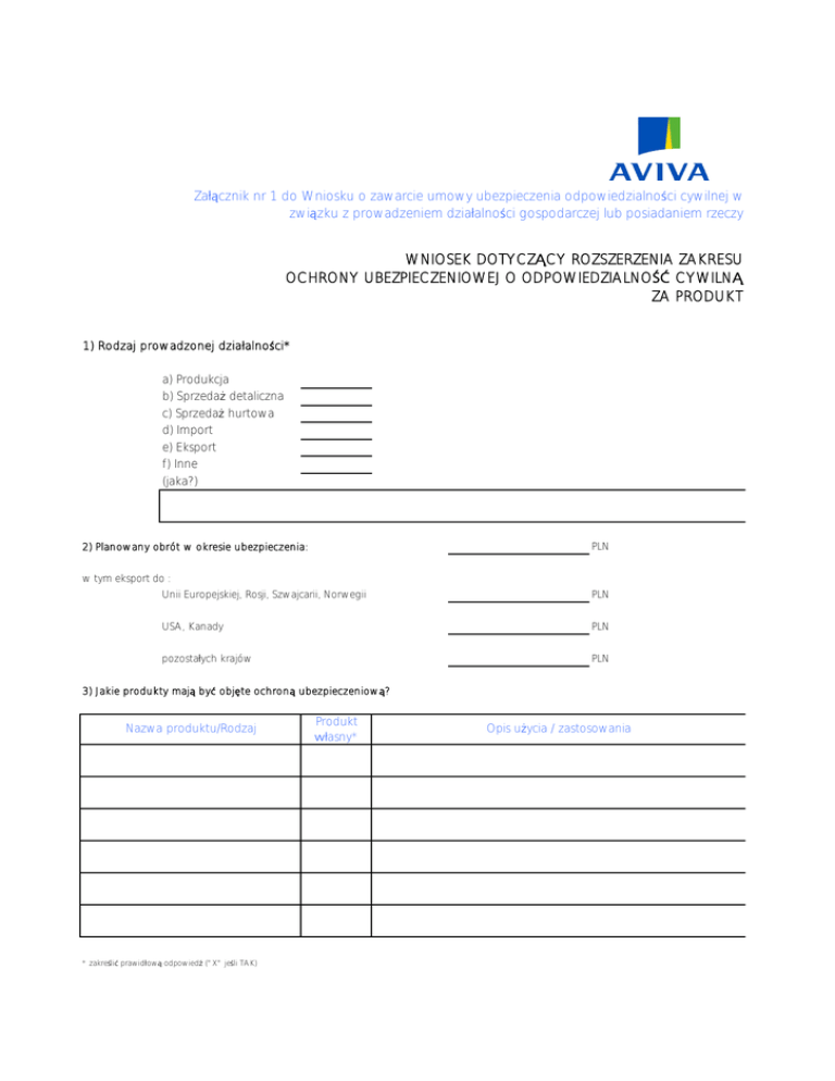 Za cznik nr 1 do Wniosku o zawarcie umowy ubezpieczenia odpowiedzialno ci cywilnej w