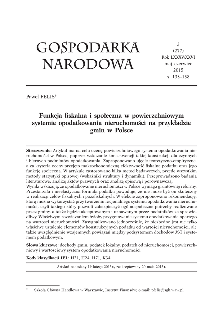 Artykuł - Gospodarka Narodowa