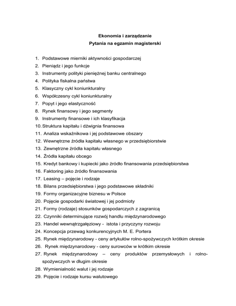 Ekonomia i zarządzanie Pytania na egzamin magisterski 1