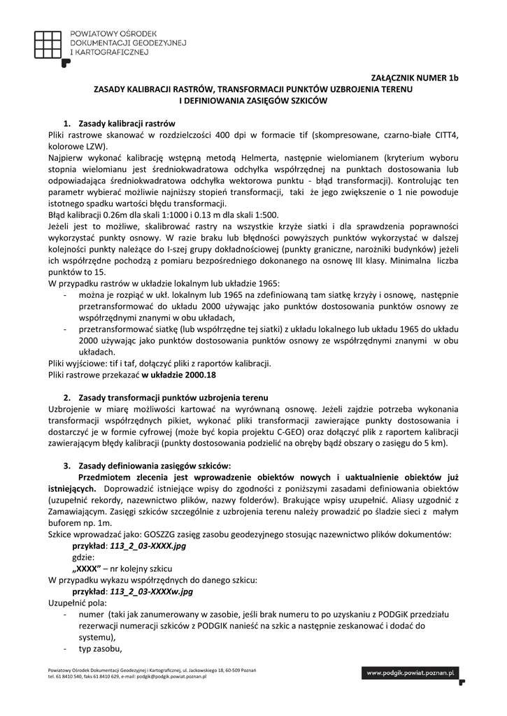 ZAŁĄCZNIK NUMER 1b ZASADY KALIBRACJI RASTRÓW