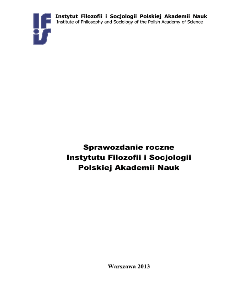Sprawozdanie 2013 - Instytut Filozofii i Socjologii Polskiej Akademii