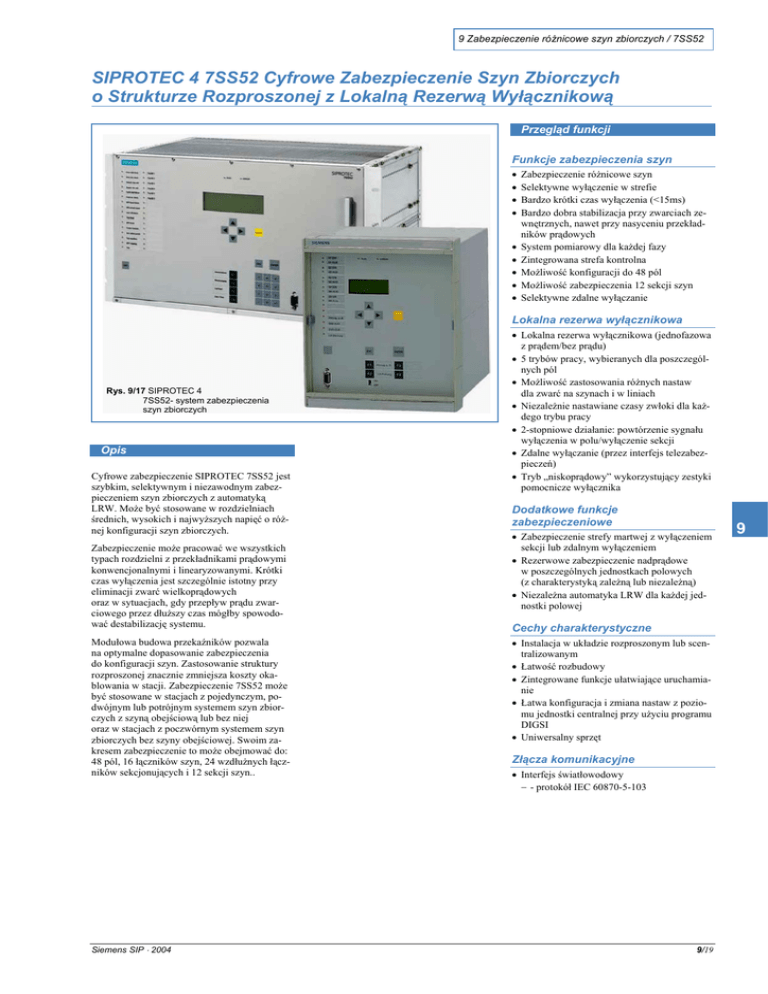SIPROTEC 4 7SS52 Cyfrowe Zabezpieczenie Szyn